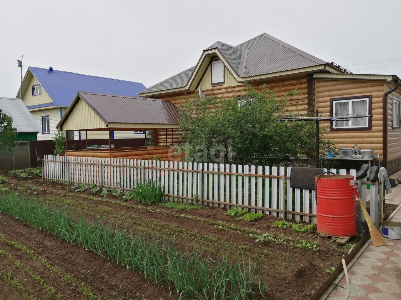 На участке есть гараж с подъемными воротами, летняя кухня, беседка, баня (моечная и парная отдельно), курятник, теплицы. Участок обработан и облагорожен.