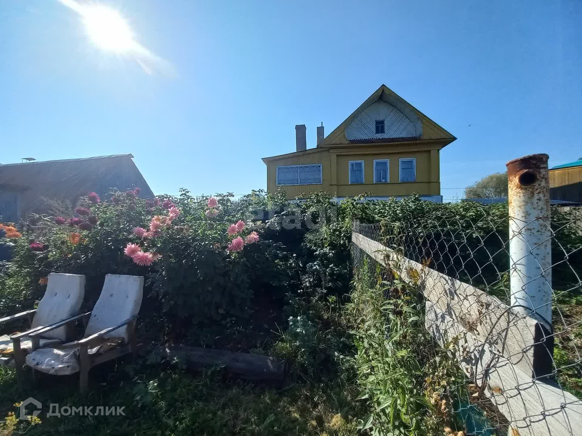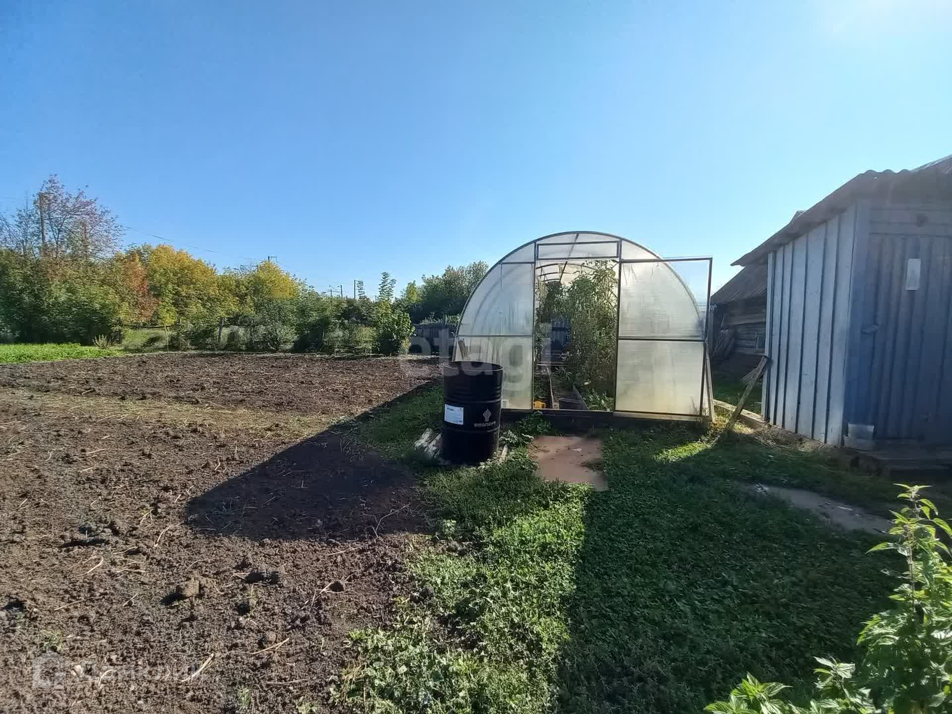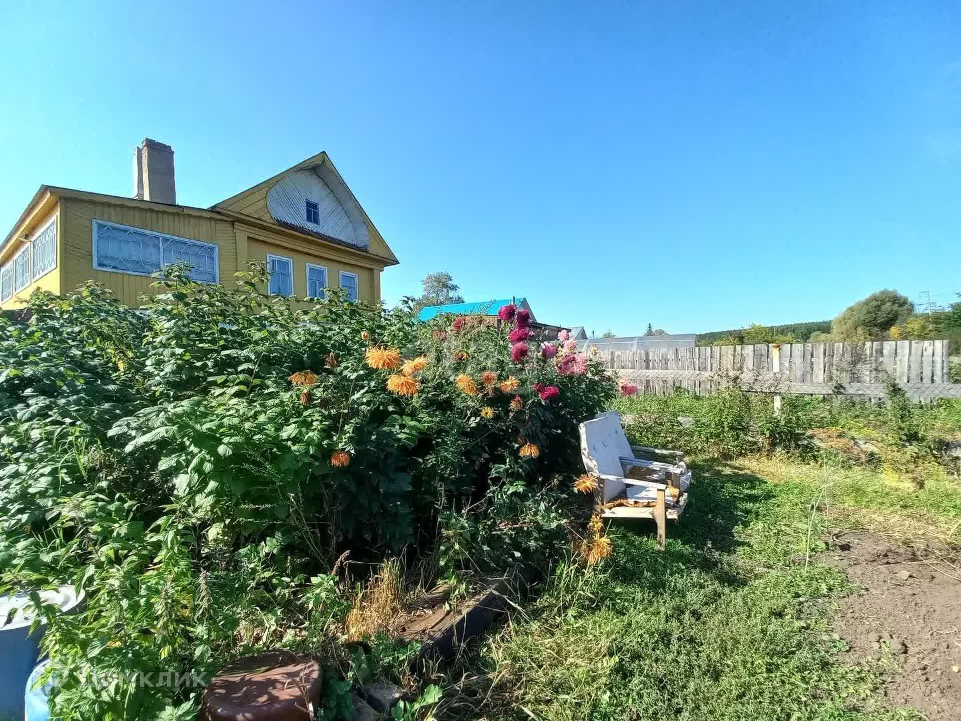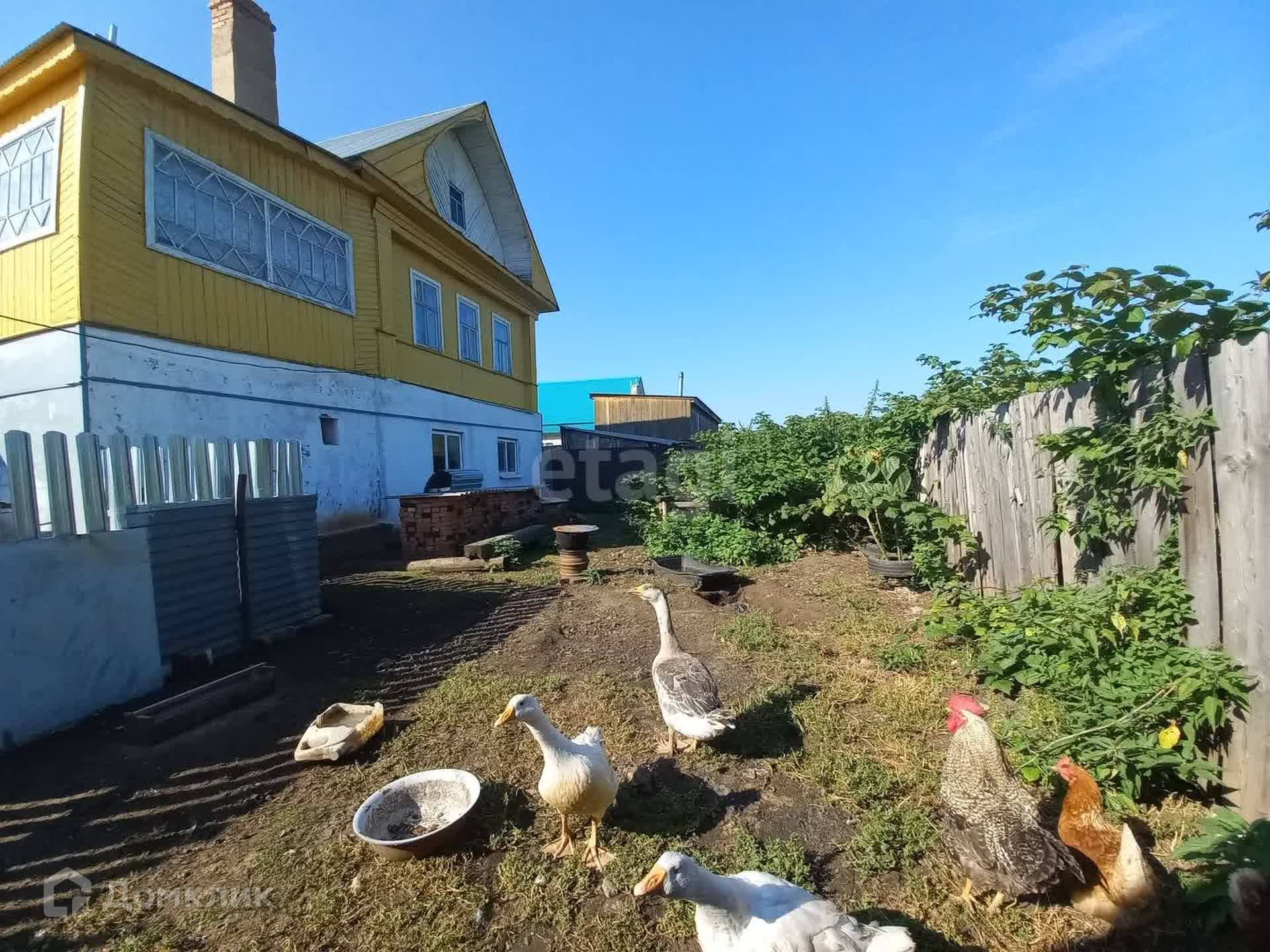 Во дворе качели, место для барбекю, теплица, курятник.