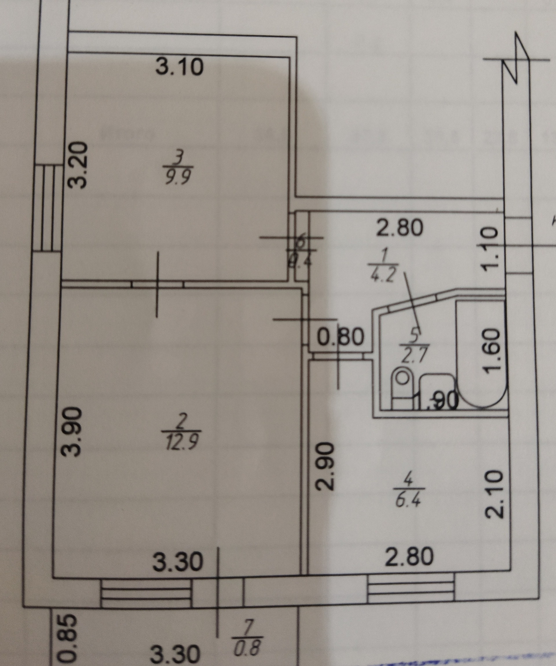 Общая площадь 36.5 м2