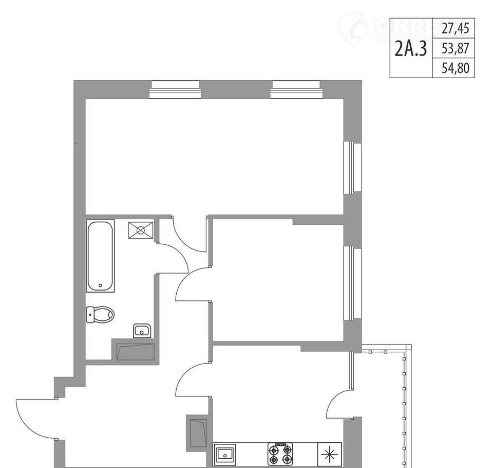 Общая площадь 54.8 м2
