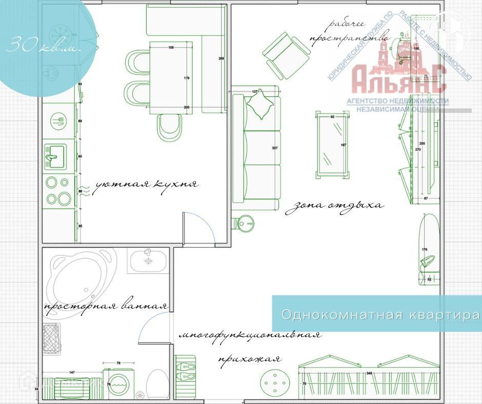 Общая площадь 35 м2