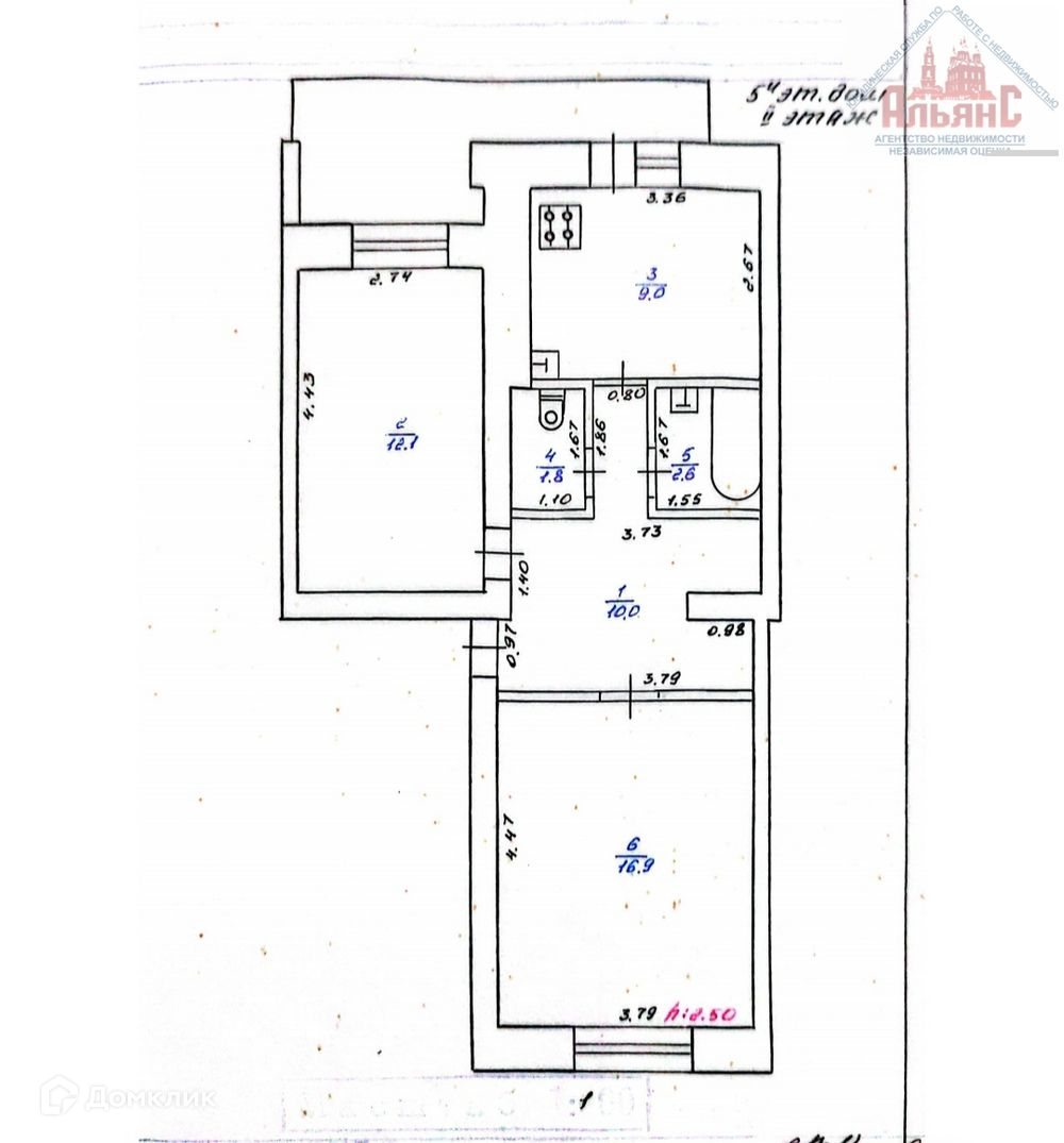 Общая площадь 56.6 м2
