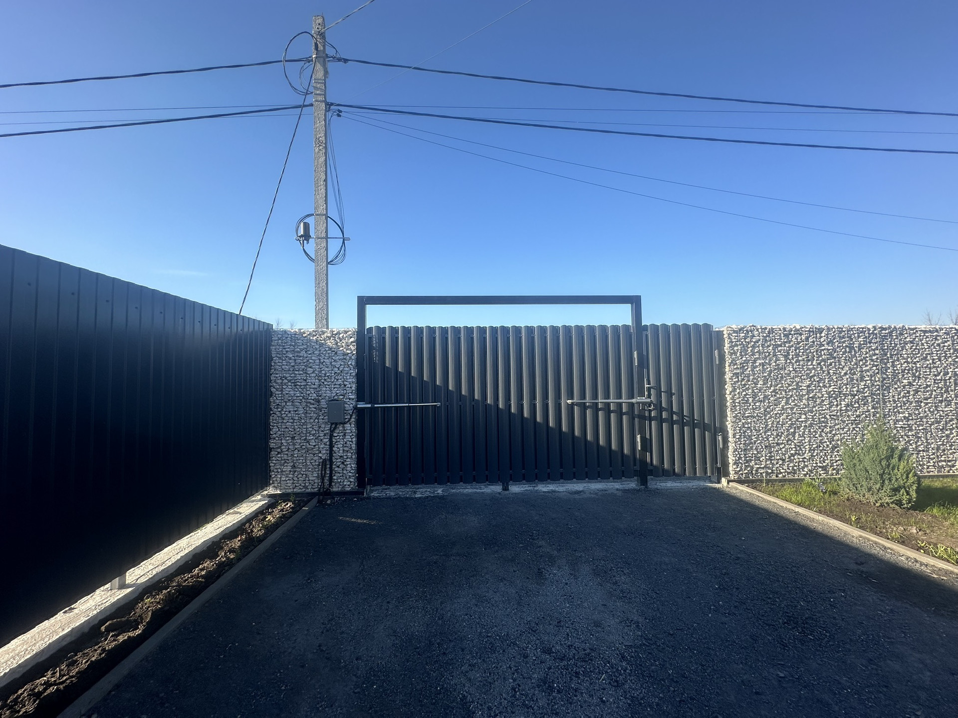 Забор габионы белый мраморный щебень.