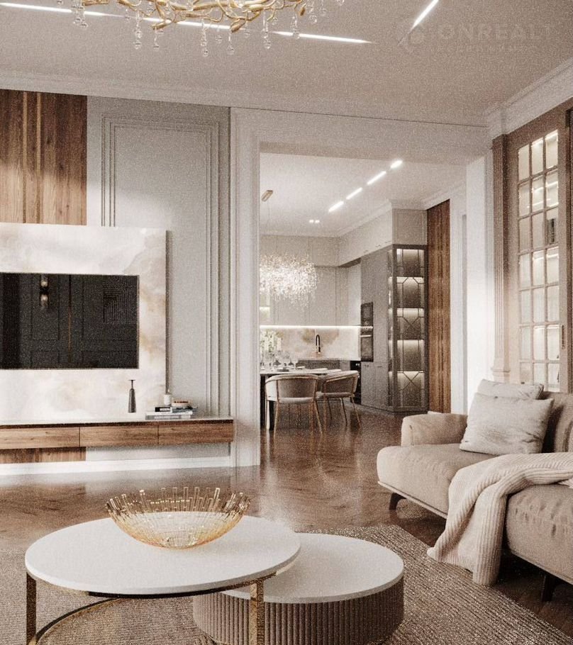 * На втором уровне находиться входная группа, прихожая, гардеробная, комната с бытовыми приборами хозяйственного назначения, сан.узел, роскошная гостинная с выходом в просторную кухню-столовую и выходом на террасу.
