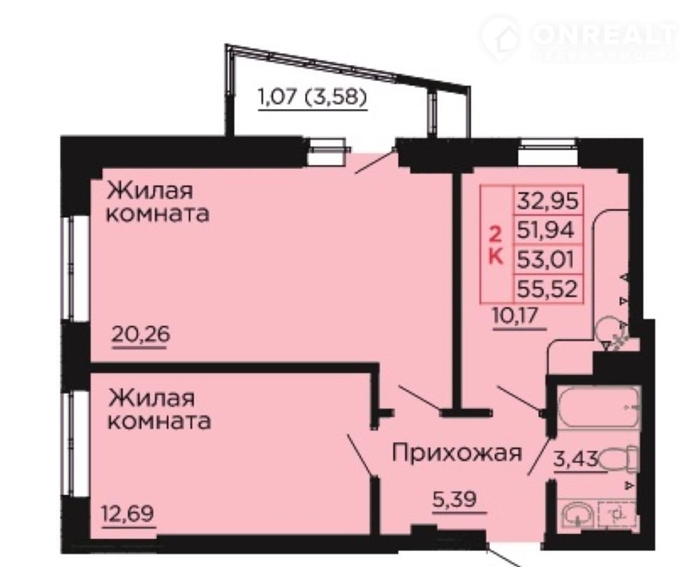 Общая площадь 53 м2
