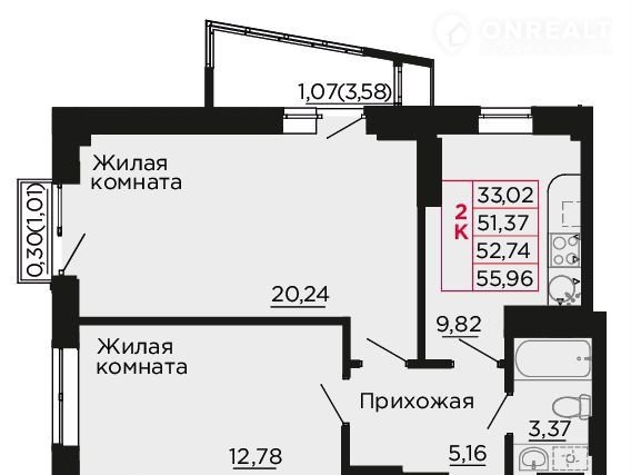Общая площадь 56 м2