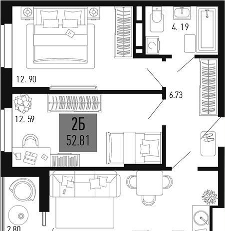 Общая площадь 52.8 м2