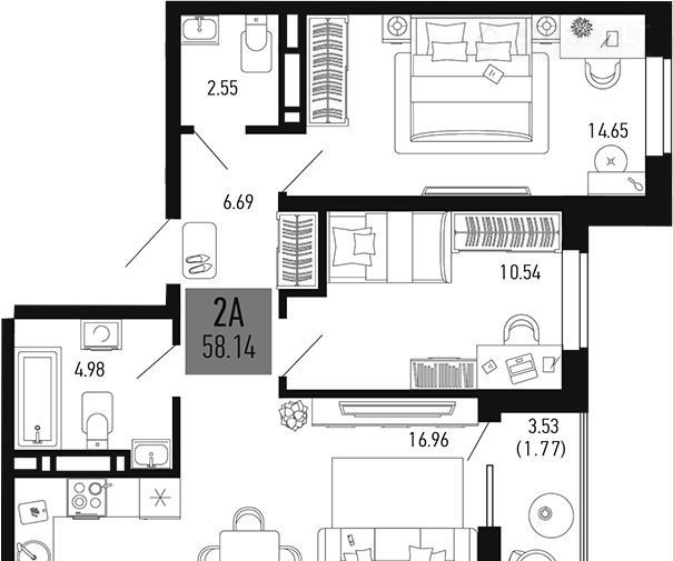 Общая площадь 58.1 м2
