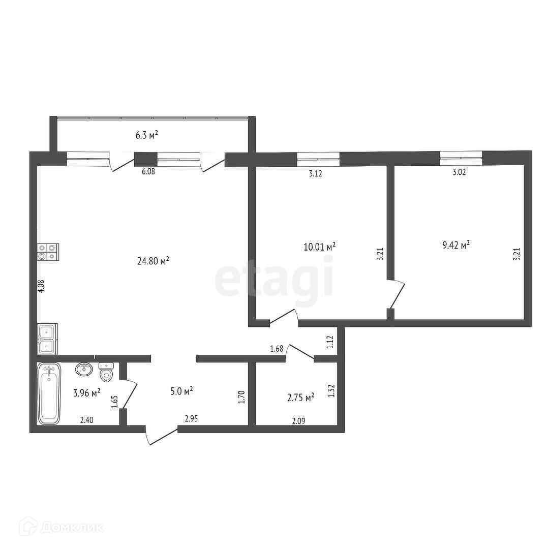 Общая площадь 60.1 м2