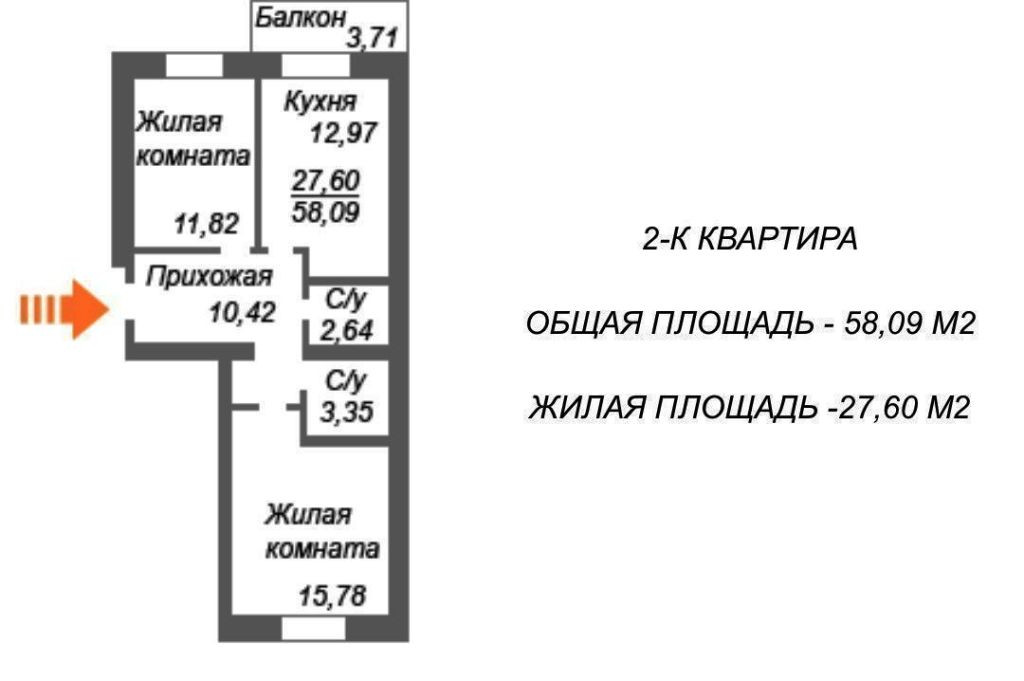 Общая площадь 60 м2