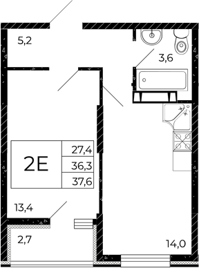 Общая площадь 37.6 м2