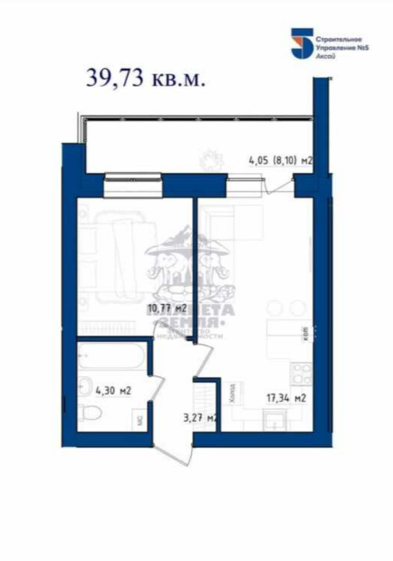 Общая площадь 39.8 м2
