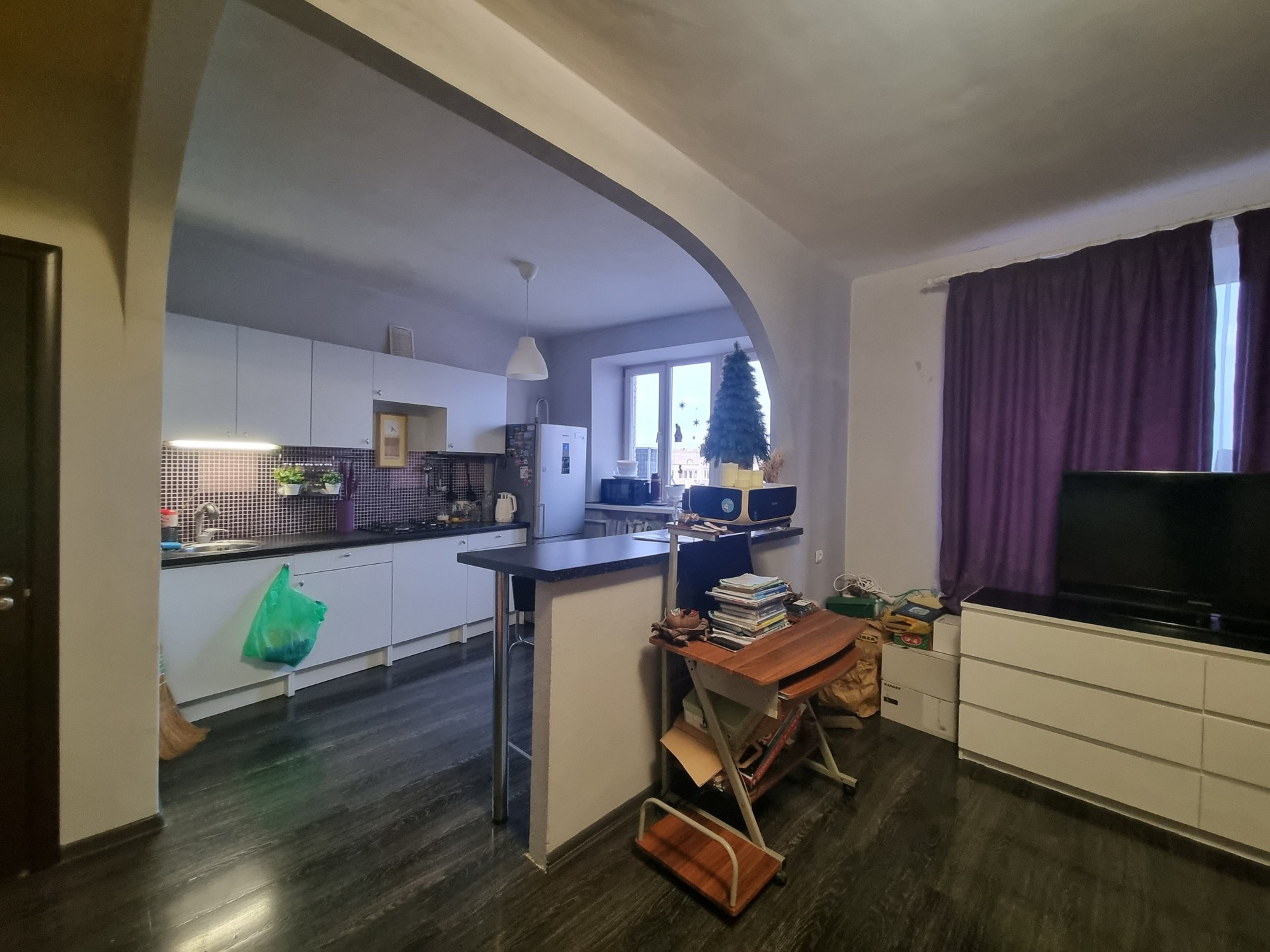 Квартира в жилом состоянии, особых вложений не требует. Современная и функциональная планировка, кухня гостинная, большая комната, санузел раздельный, балкон не застеклен. При продаже собственник оставляет кухонный гарнитур. Фото реальные, показ по договоренности.