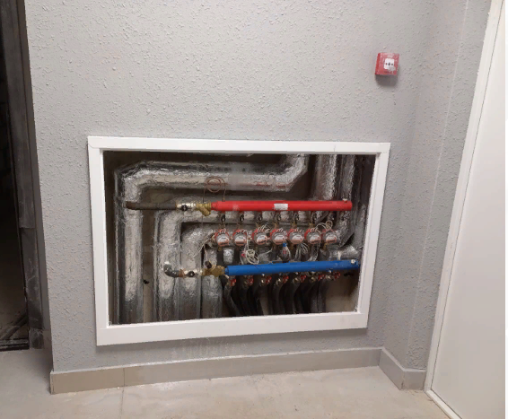 на каждую квартиру стоят счетчики тепла.