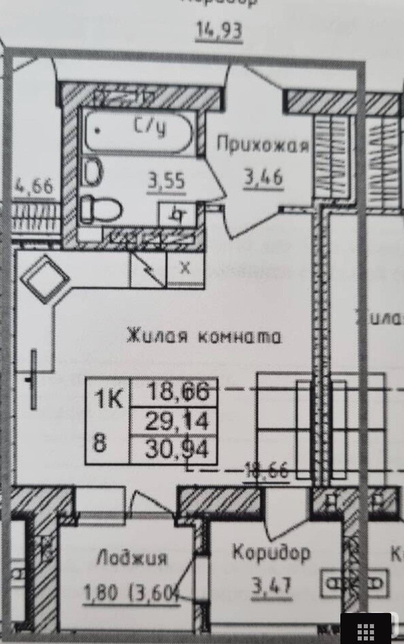Общая площадь 29 м2