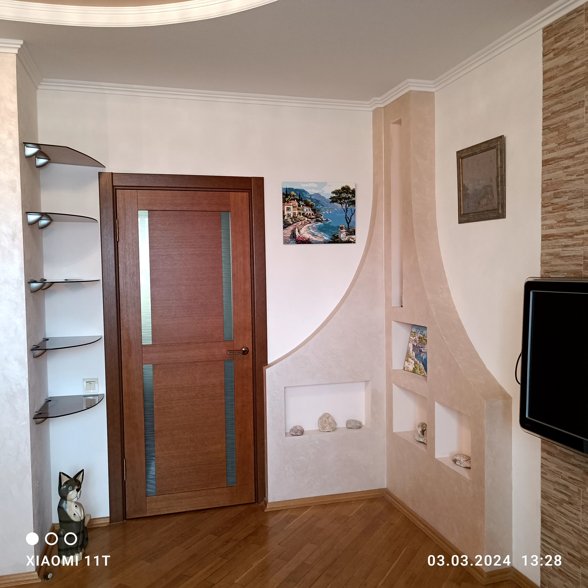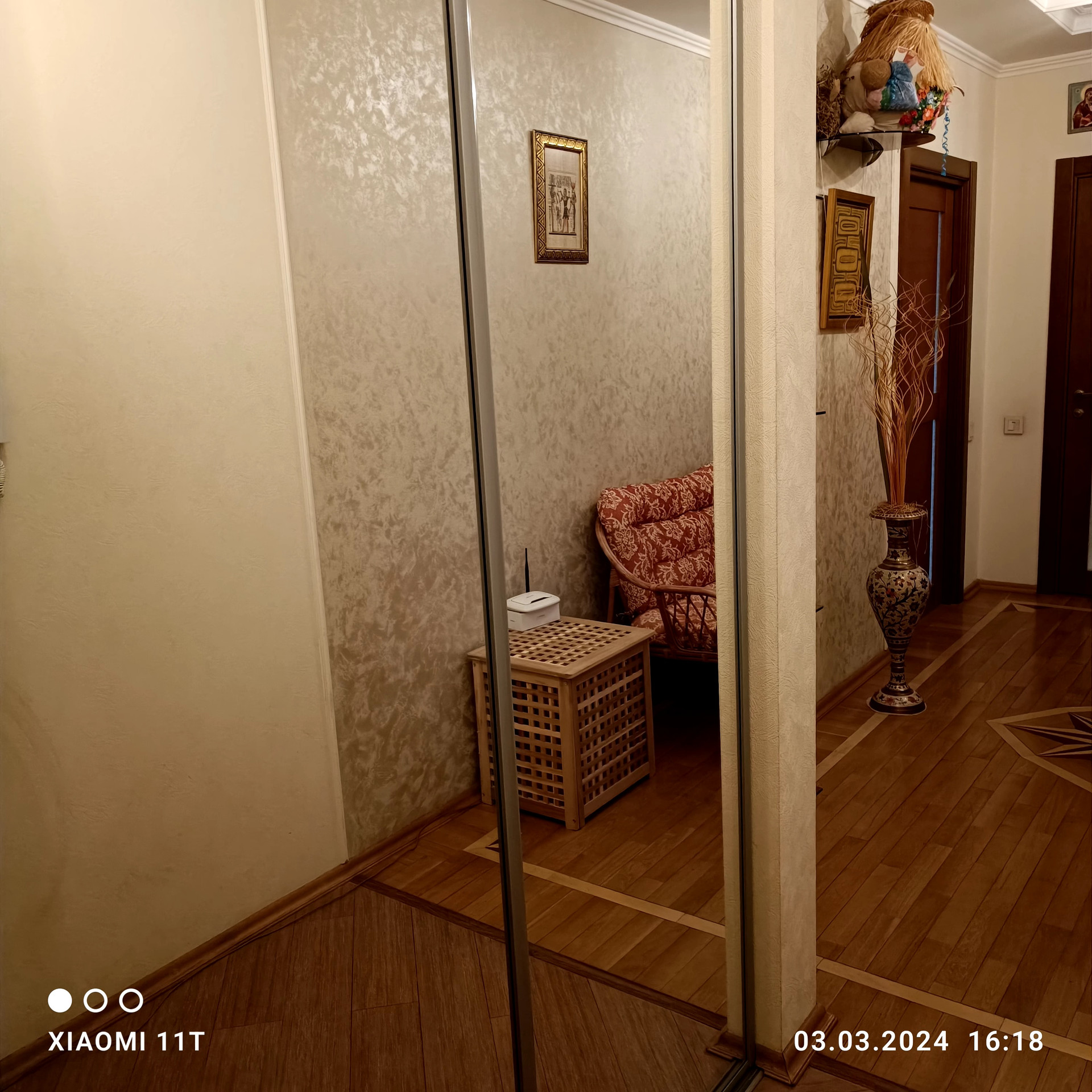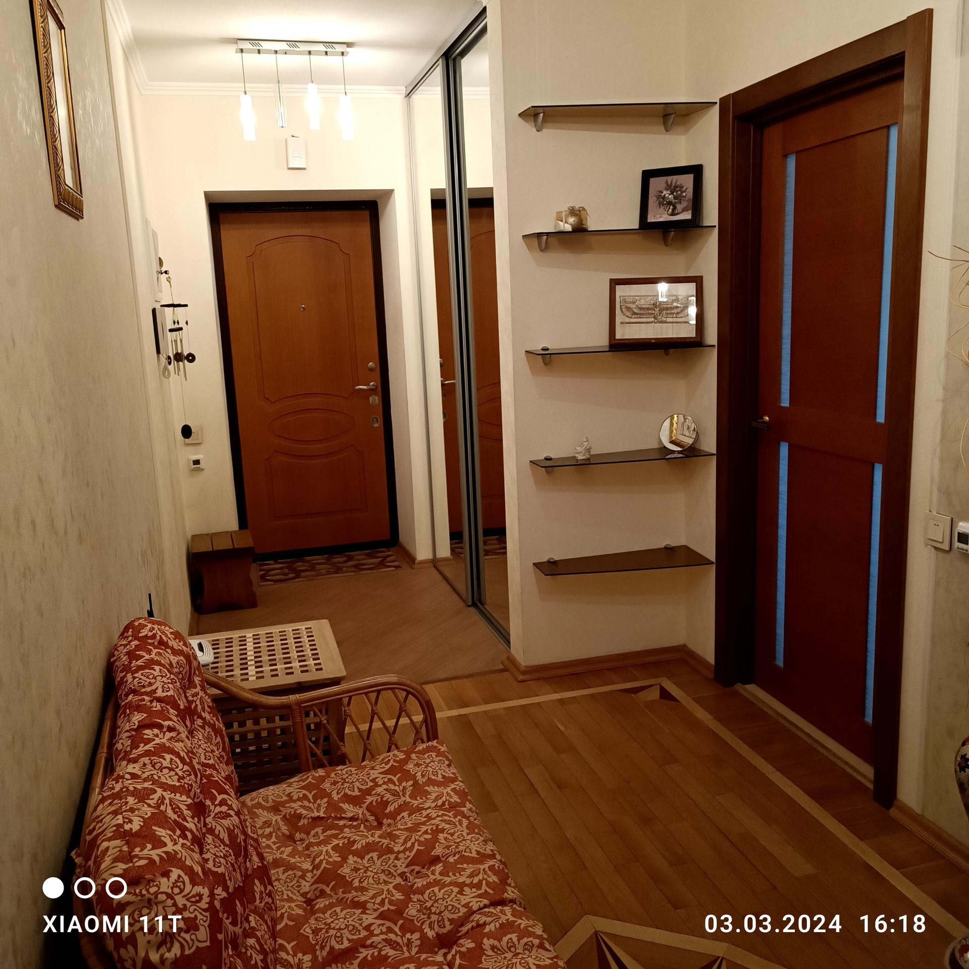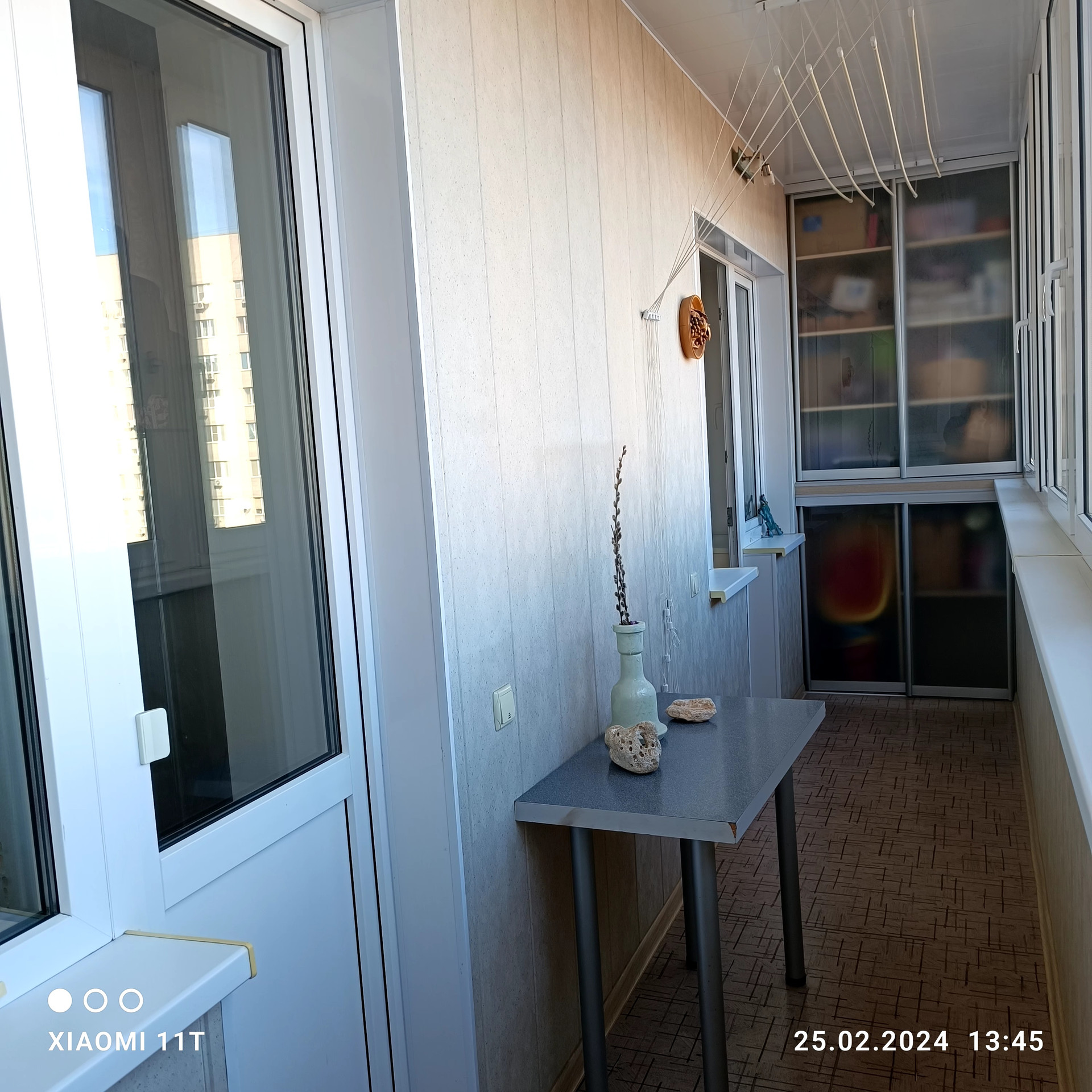 -застекленный утепленный огромный балкон 8 м2, глубиной 1.2 м2, с отдельными выходами в кухню и гостиную, с устроенными местами хранения и зоной отдыха;
