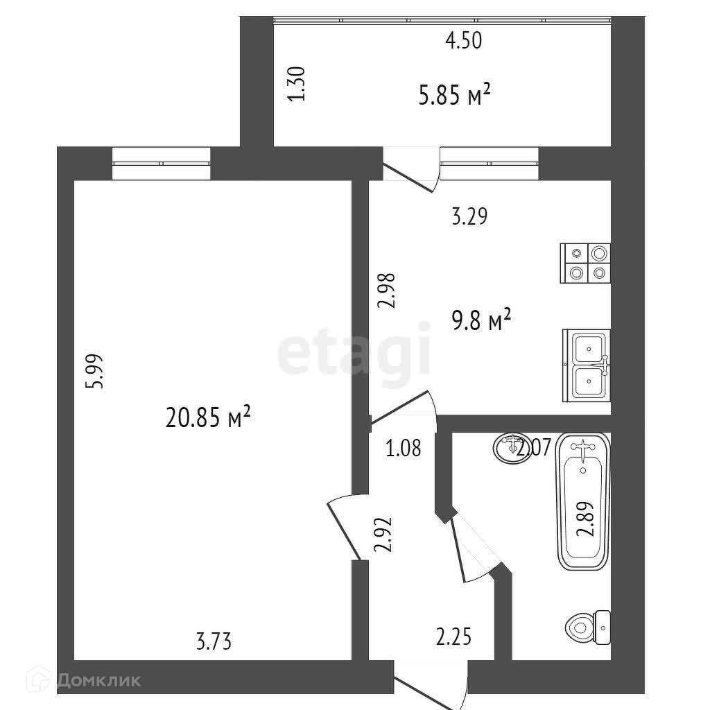 Общая площадь 43 м2
