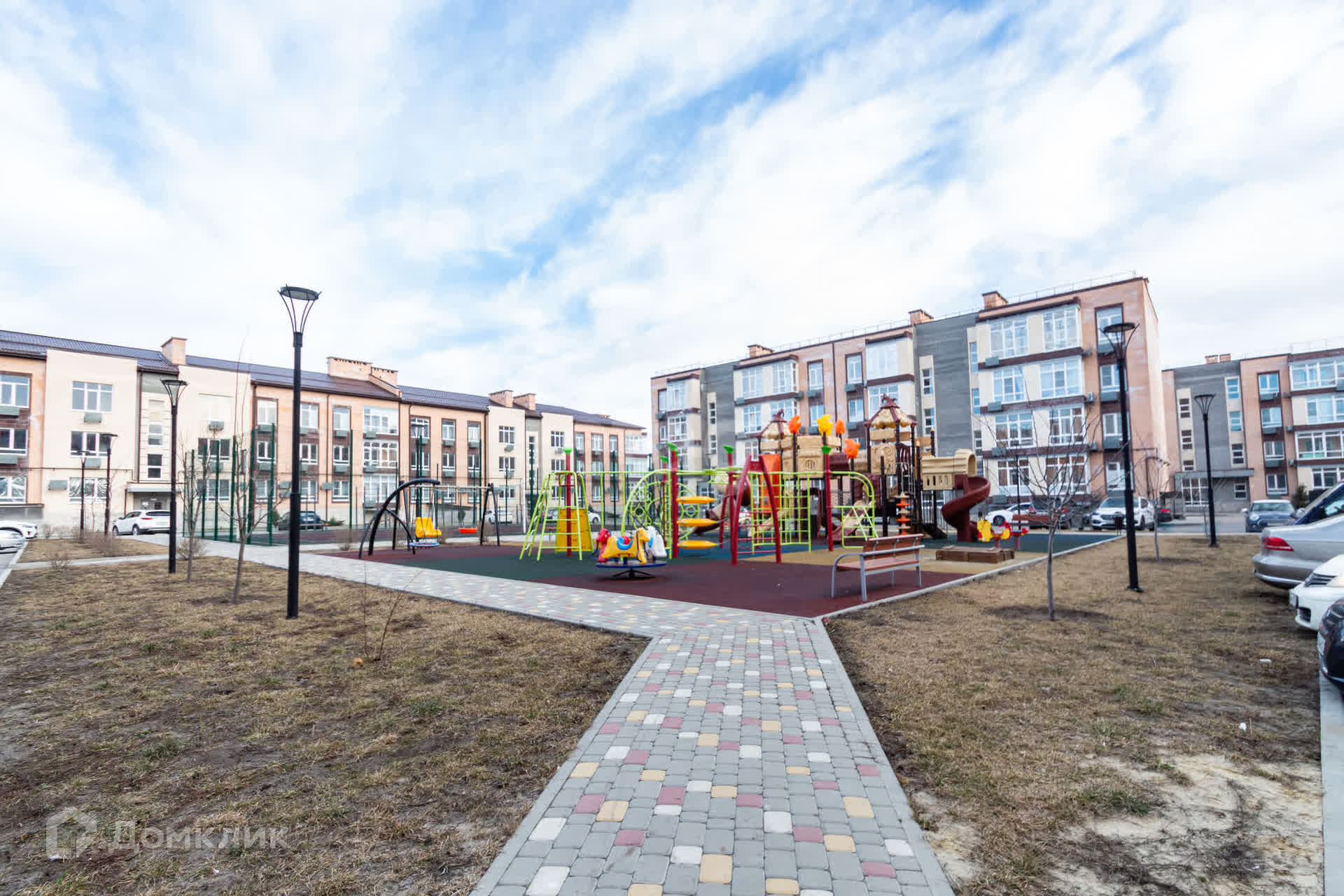 Огромная закрытая территория со своими парковками, детскими и спортивными площадками, зонами отдыха.