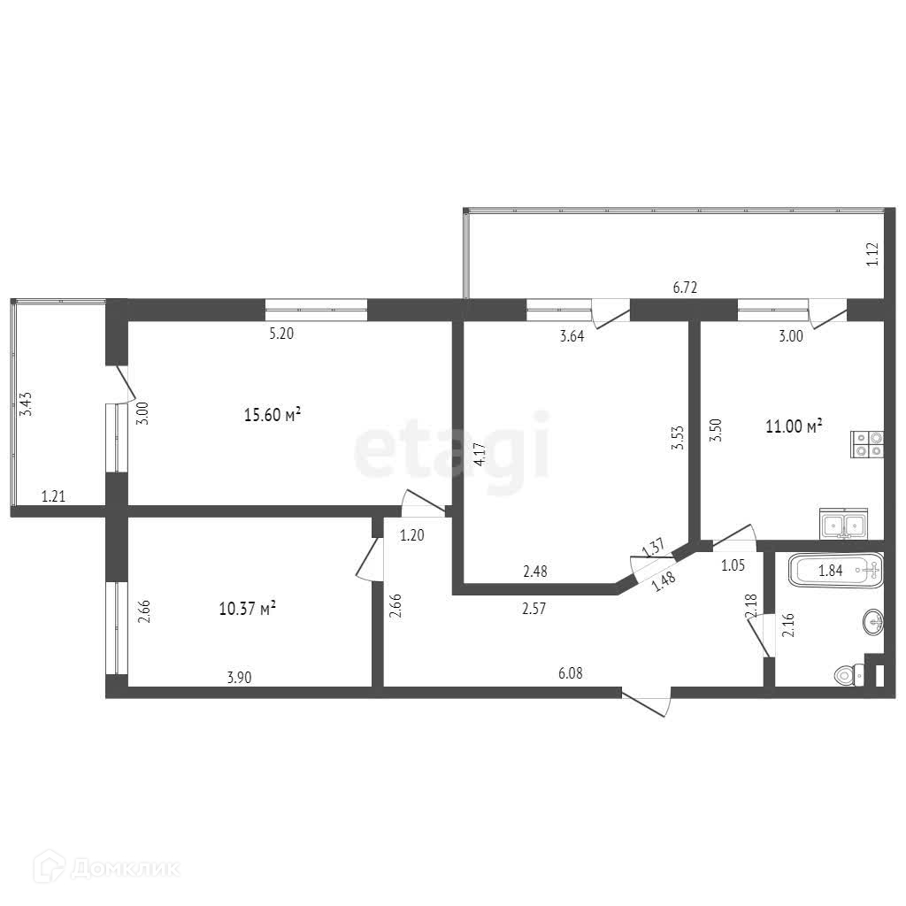 Квартира в черновой отделке. Имеются два балкона с панорамным остеклением. Индивидуальное отопление позволит существенно сэкономить на коммунальных платежах.