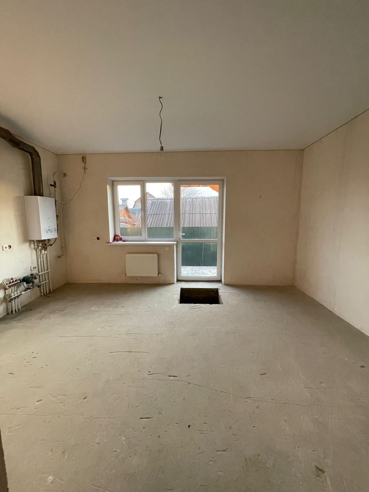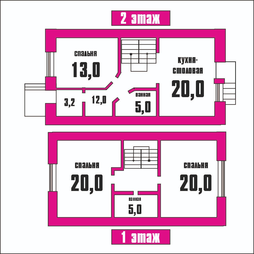 Втoрой этаж -две спальни и санузел, первый - комната и кухня-гостиная, теплый пол, кроме комнаты, стяжка.