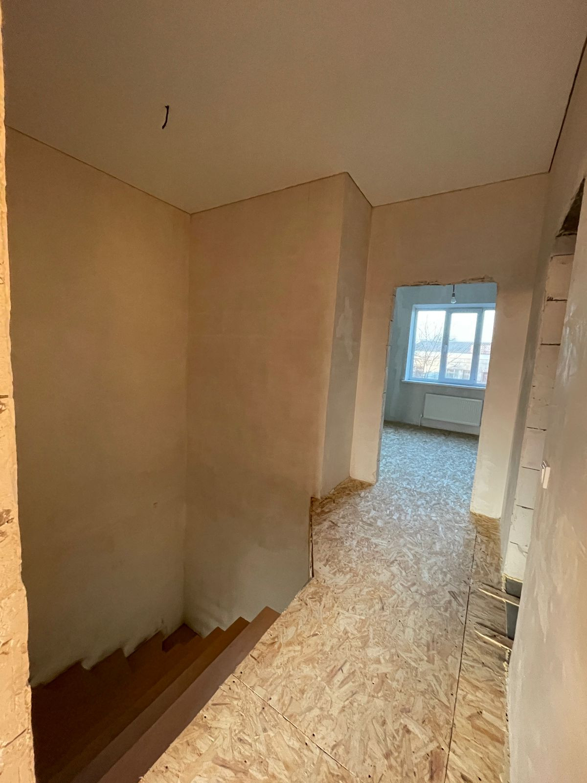 Стены оштукатурены, разводка электричества по всему дому.