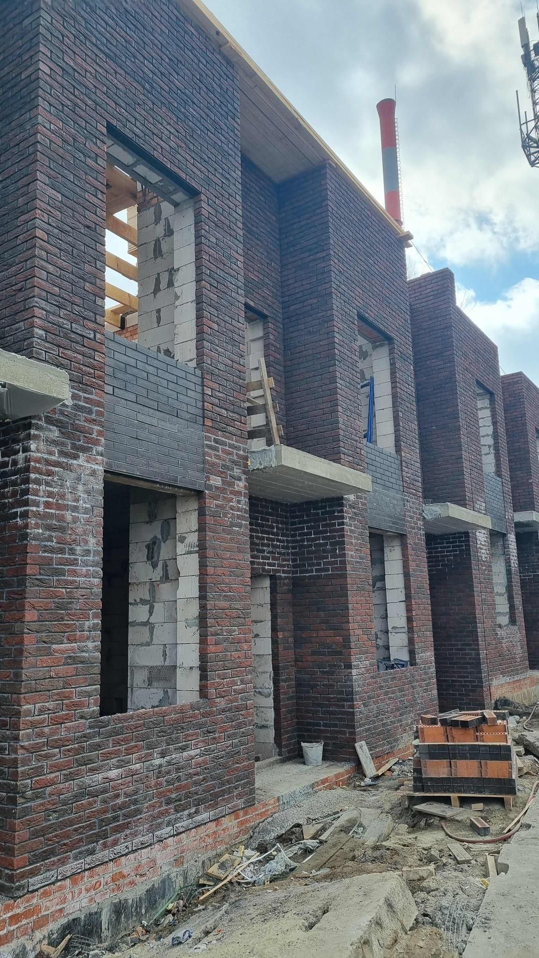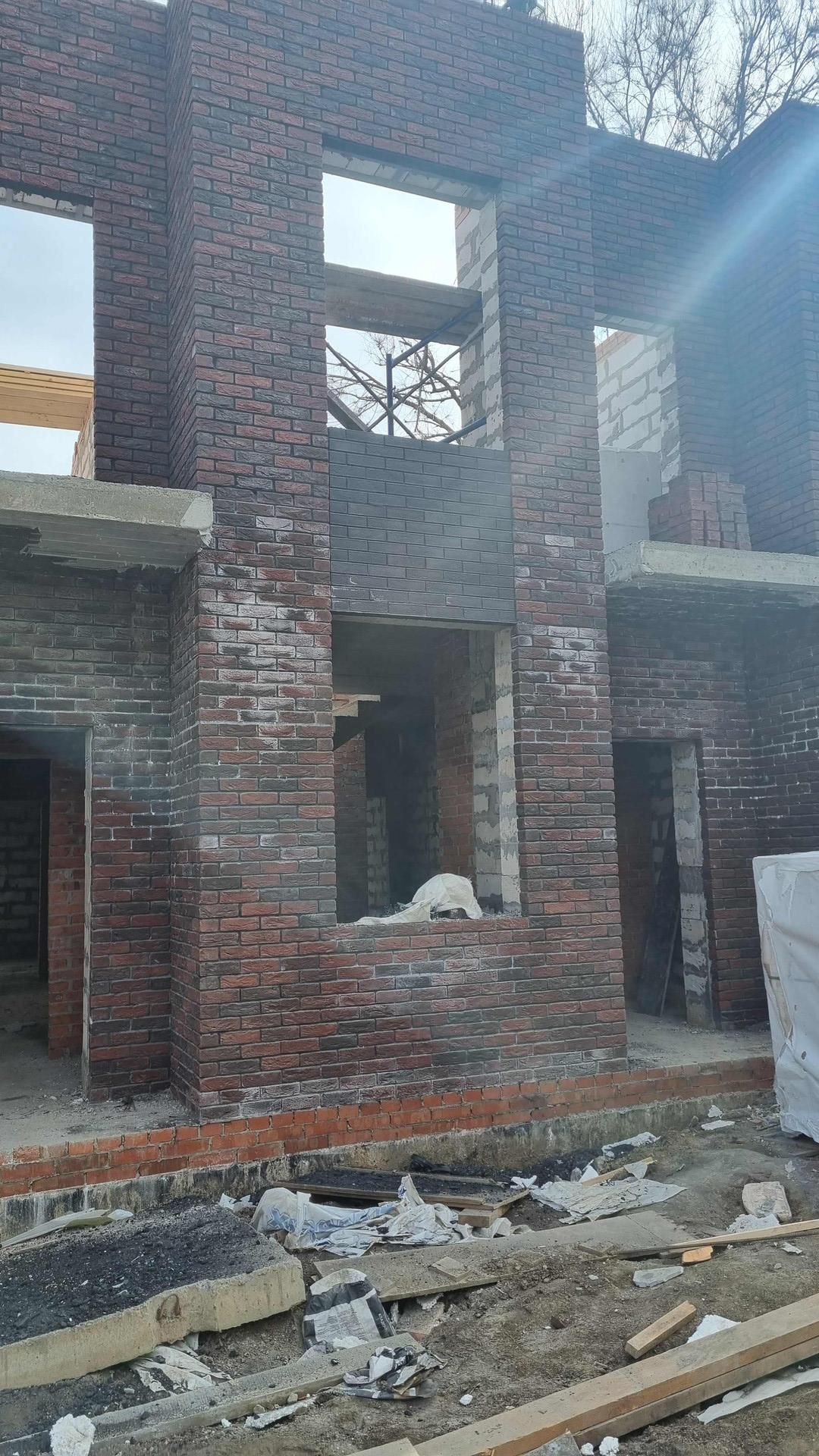 Облицовка клинкерным кирпичом. Внутренние стены газоблок 250 мм, качественные окна и входная дверь, будет установлен двухконтурный газовый котел, разводка электрики, стены оштукатурены, центральная вода и канализация.