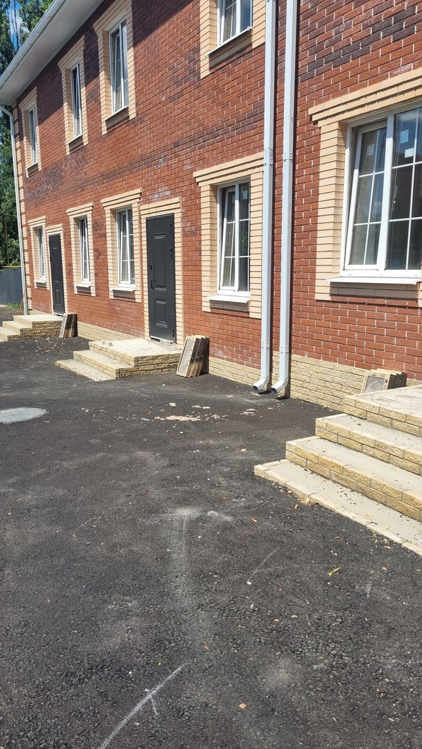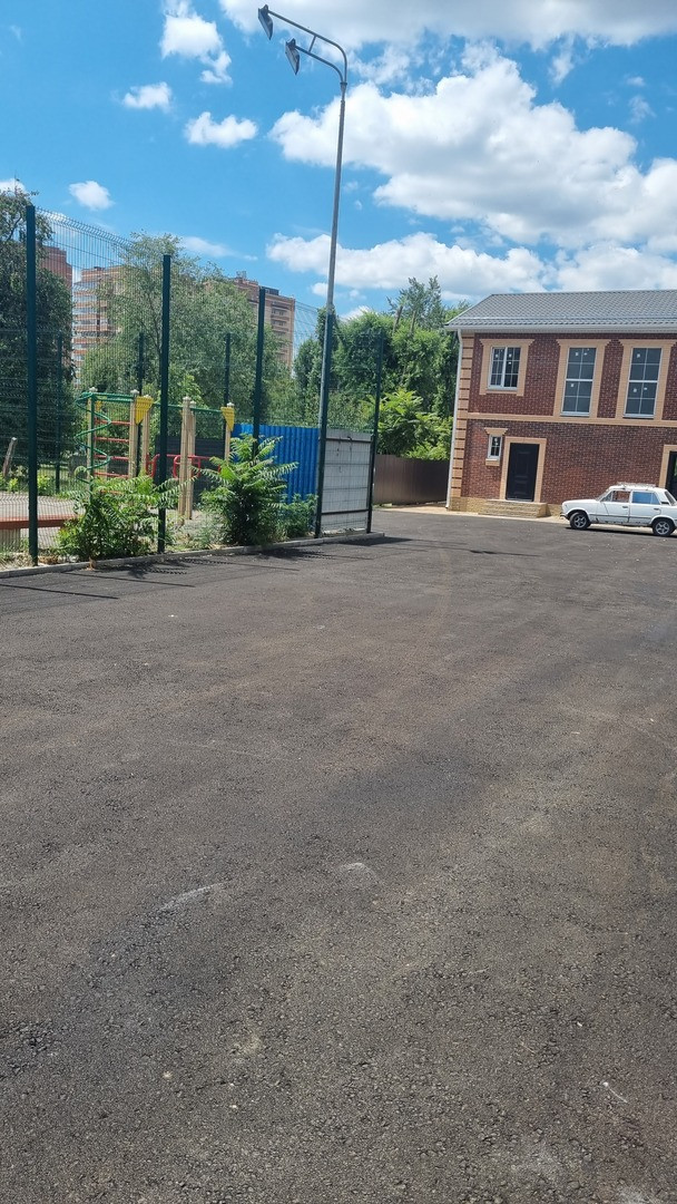 Придомовая территория облагорожена, заасфальтирована. Есть парковочные места. Зона барбекю выложена тротуарной плиткой.