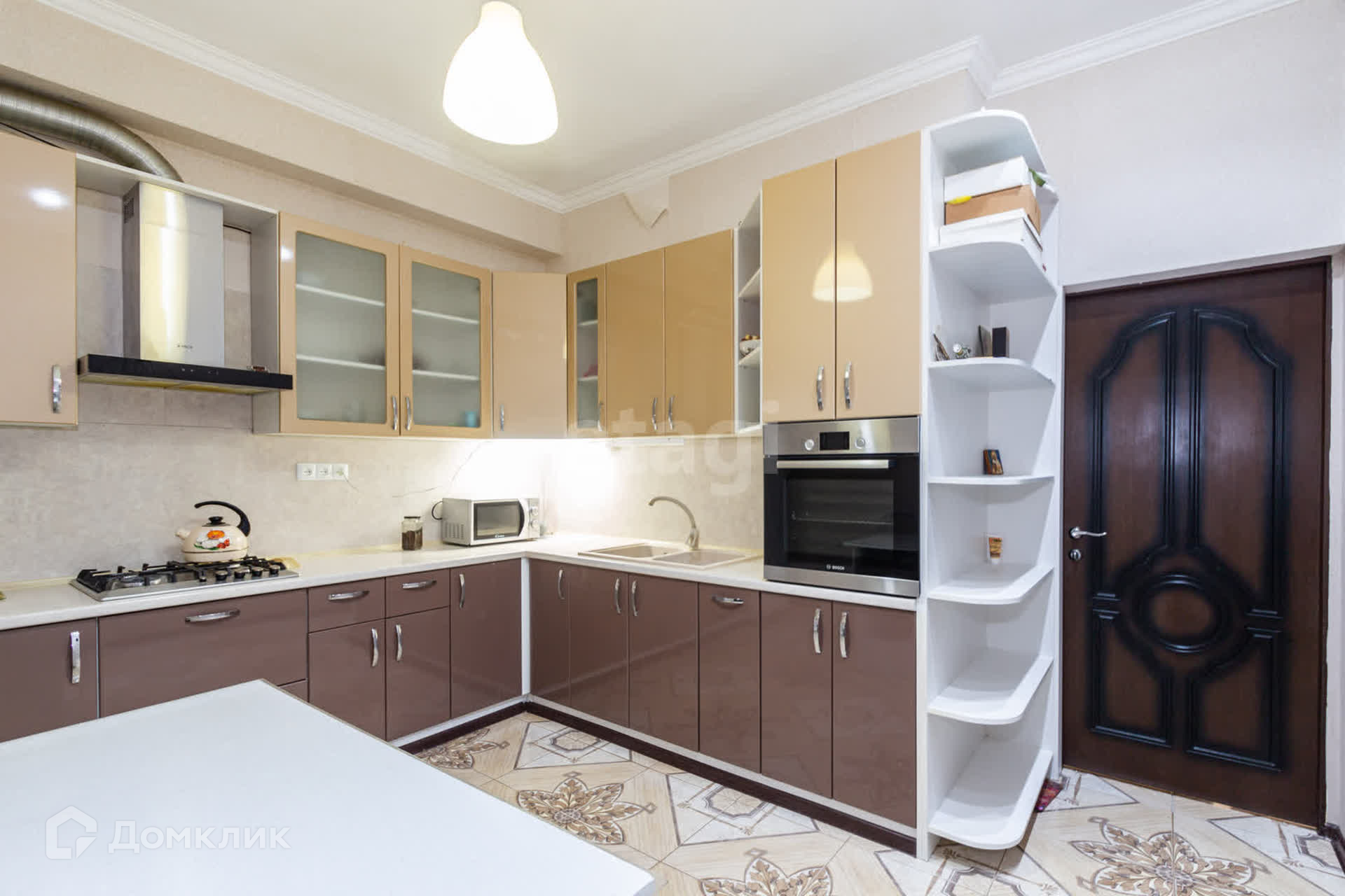 Кухня оснащена высококачественной бытовой техникой от мирового лидера - компании Bosch, что обеспечит вам комфорт и удобство в приготовлении пищи.