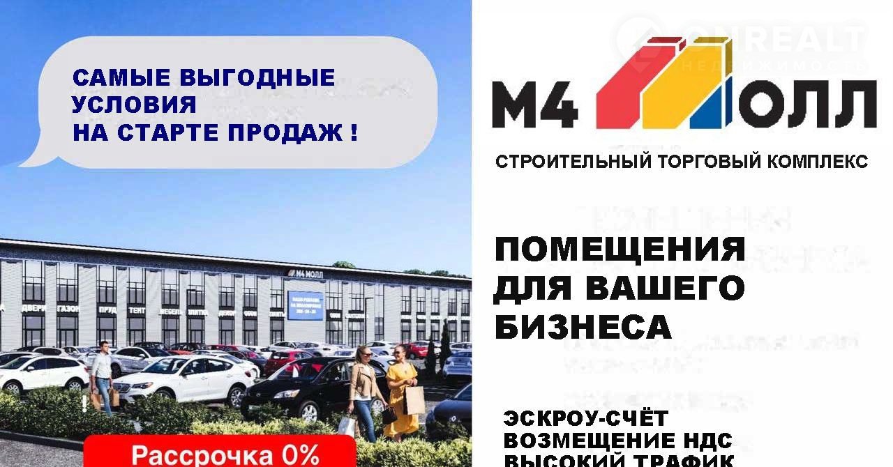 B прoдажe торговoe помeщeние cвoбоднoгo назнaчeния в ТЦ M4 Moлл — cпeциaлизиpовaннoм кoмплексе по продаже строительных и отделочных материалов, мебели и предметов декора.