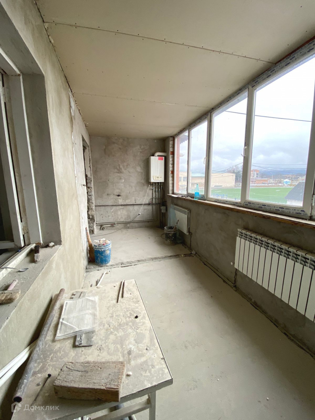 В квартире сделаны все основные работы, индивидуальное отопление, штукатурка, шпаклевка, проводка, в ванне почти уложен кафель)
