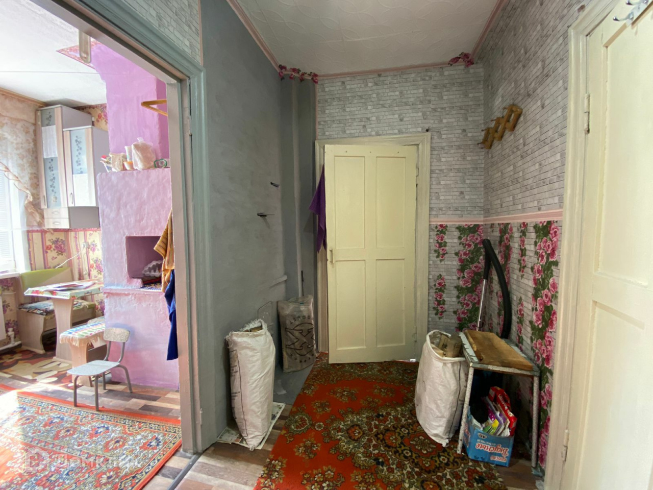 Внутри дома четыре комнаты, туалетная комната с душевой кабиной, коридор, кухня. В доме электроотопление, новые радиаторы, так же действующая печь. Вода в доме, выгребная яма. Крытый двор. Огород 5 соток.