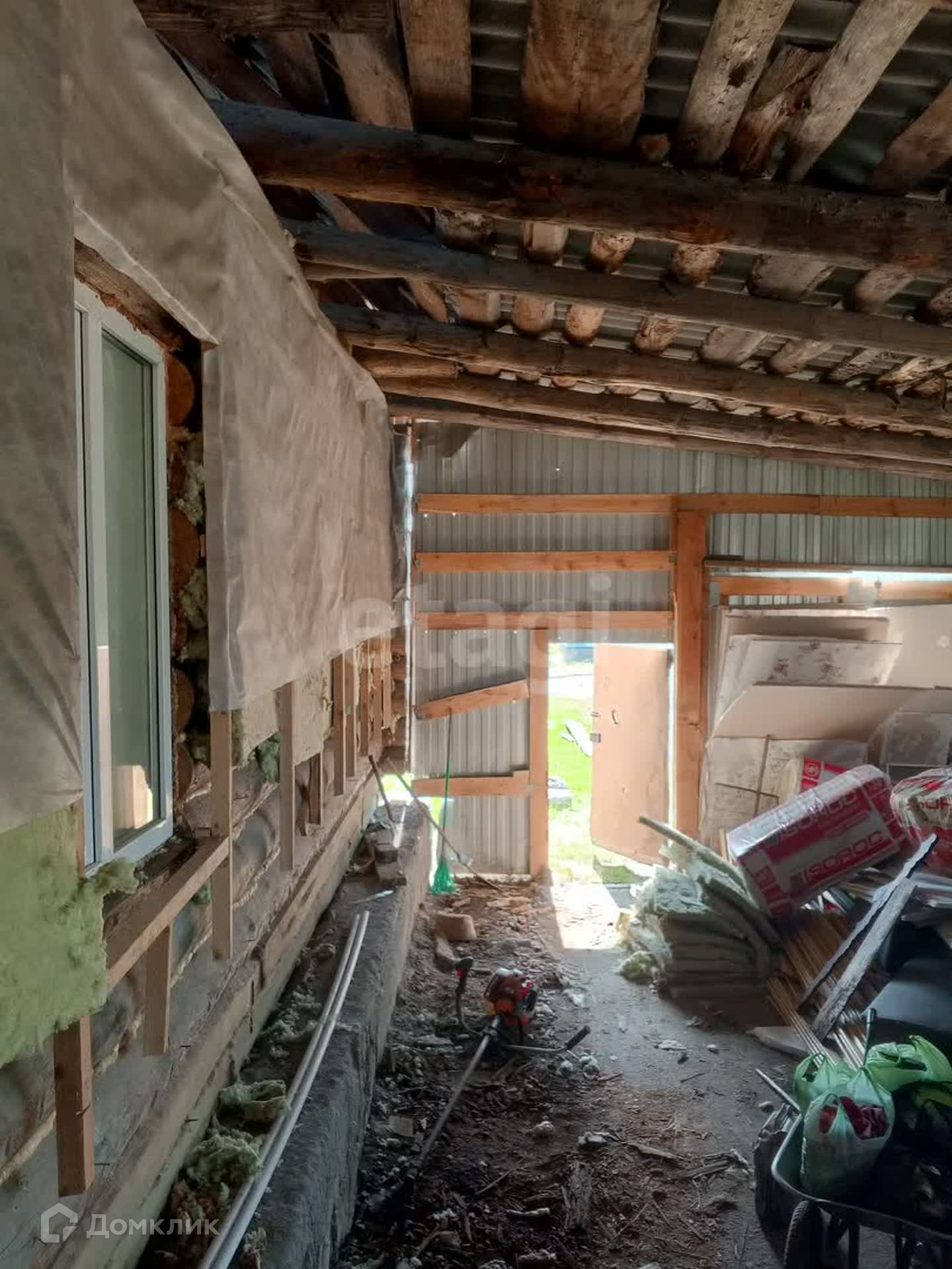 Дом требует ремонта, есть строительный материал, большая крытая ограда и баня.