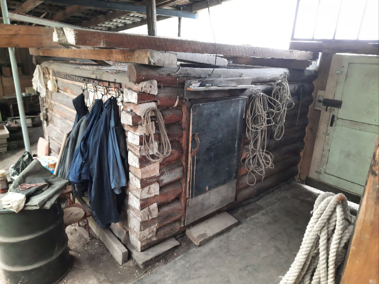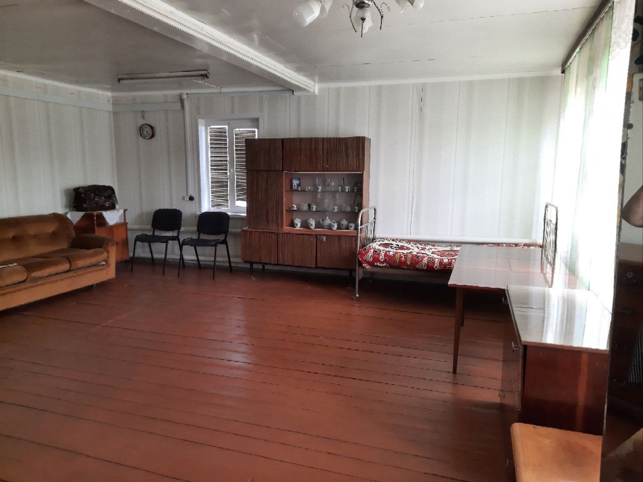 Дом общей площадью 67,1 квадратных метра разделён на две части. Он находится в отличном состоянии: крыша дома не течет, фундамент и сруб в идеальном порядке. Внутри есть всё необходимое для комфортного проживания: газ, электричество, водопровод, печь для дополнительного обогрева а также газовая плита. Также имеется место под санузел, где установлен унитаз. Выгребная яма закопана перед домом.