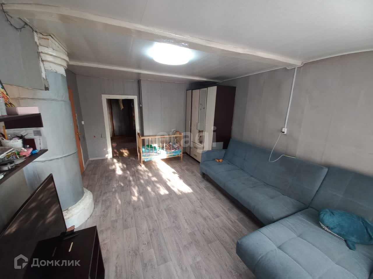 -В доме один этаж: 4 жилые комнаты, коридор, кухня, большая ограда , баня, дровяник.