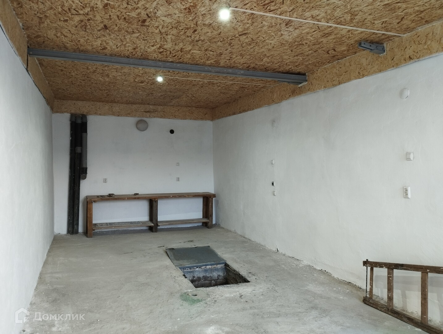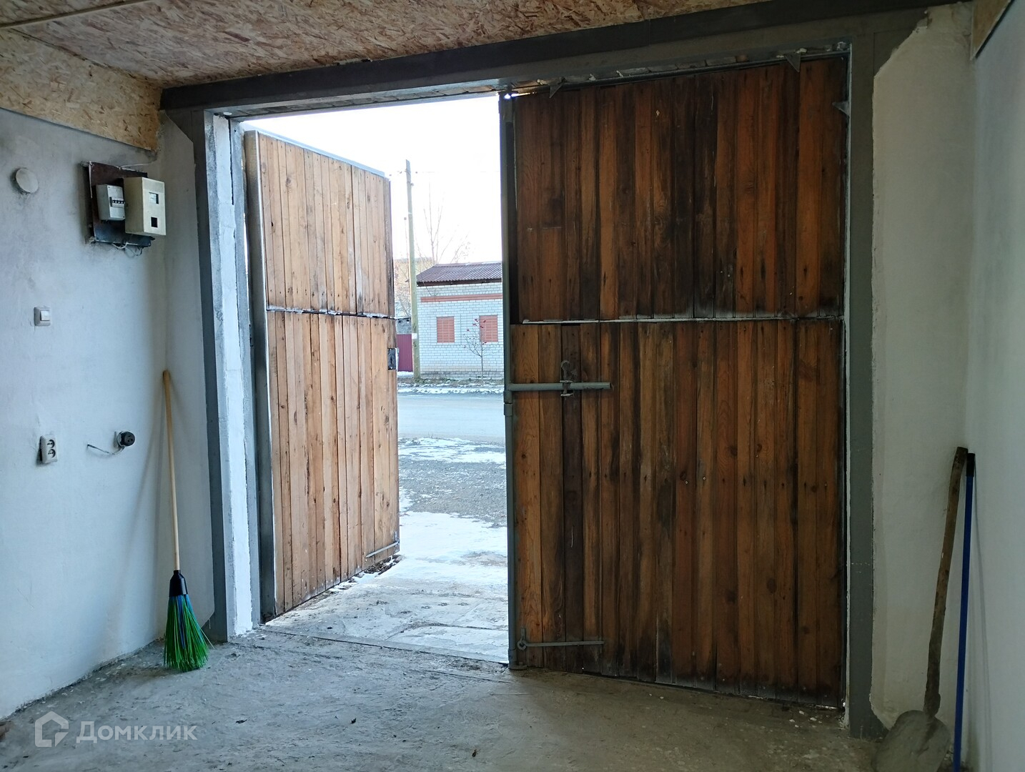 - Фундамент: бетонный, ленточный, стены: кирпичные, перекрытия: деревянное отепленное, кровля: железная (новая), пол:бетон, ворота: железные, отделка внутренняя и наружная: штукатурка