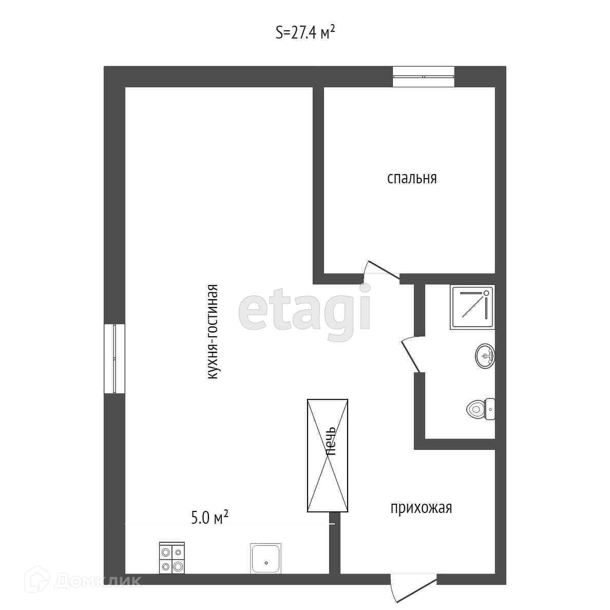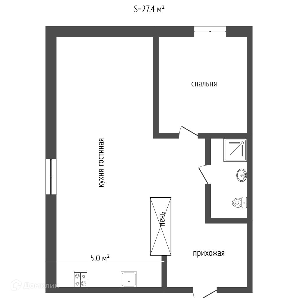 Общая площадь 27.4 м2