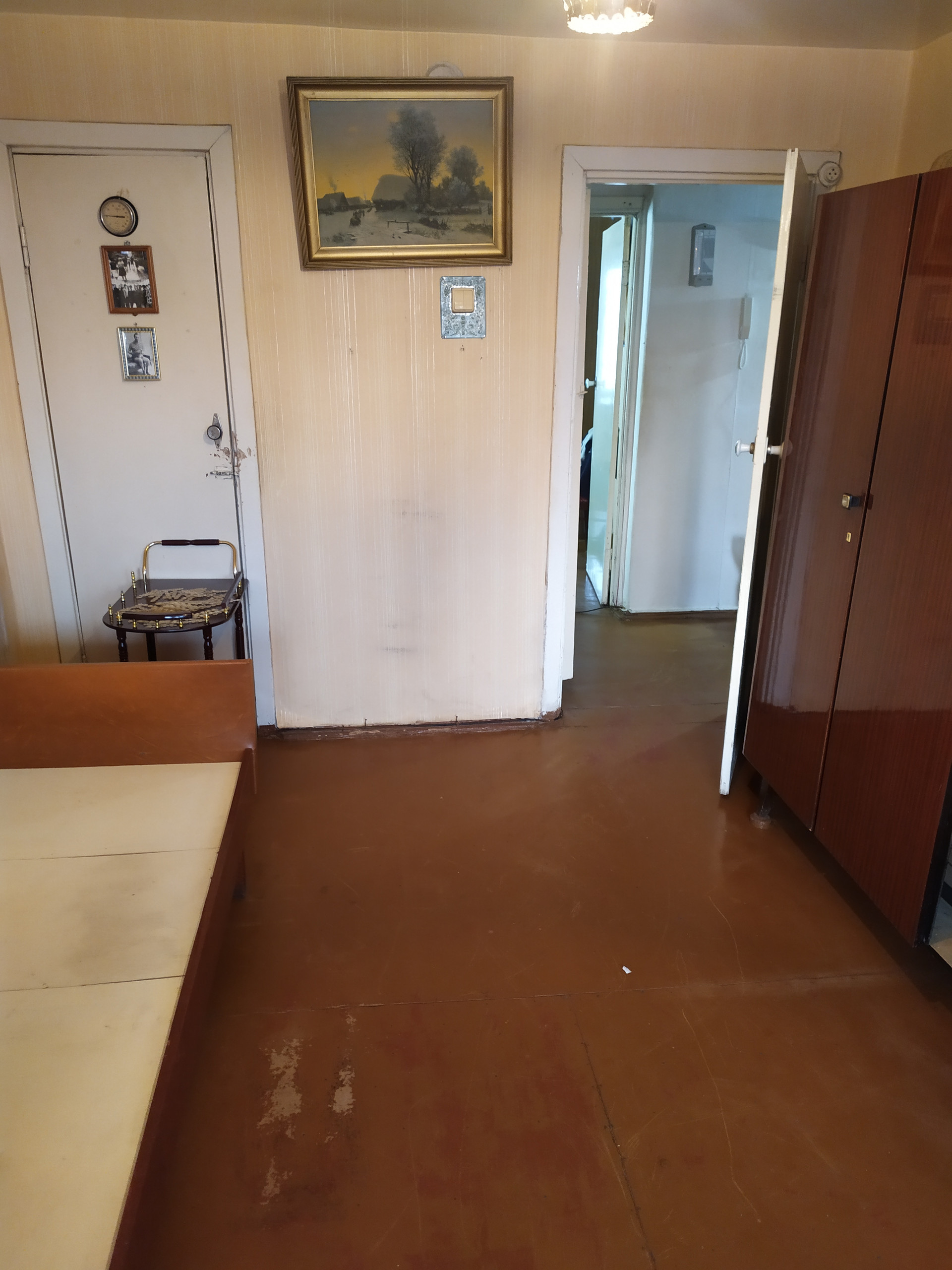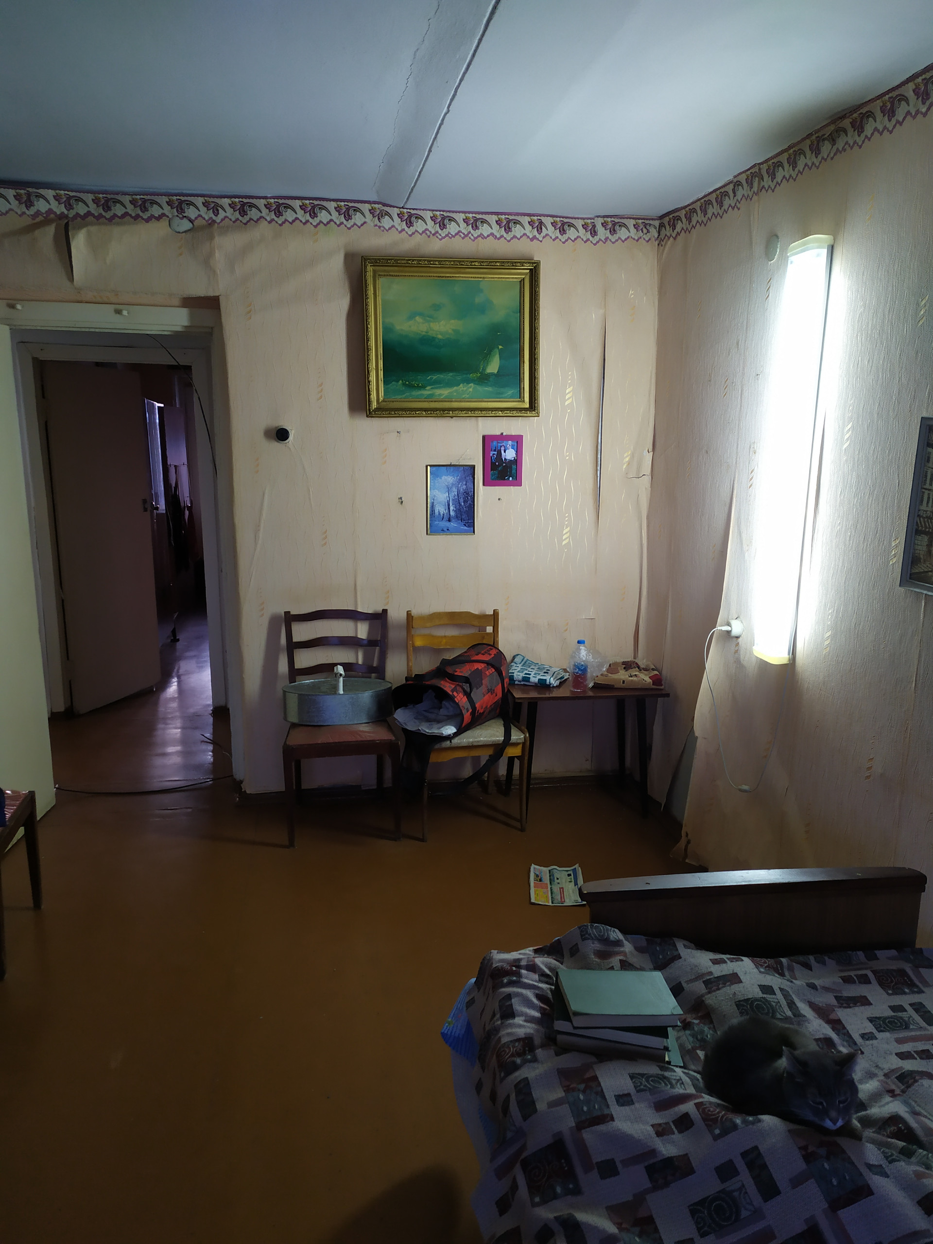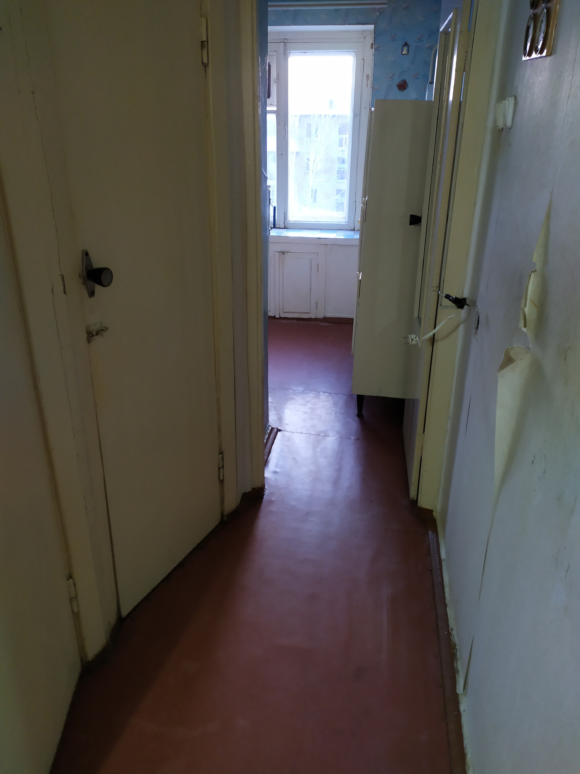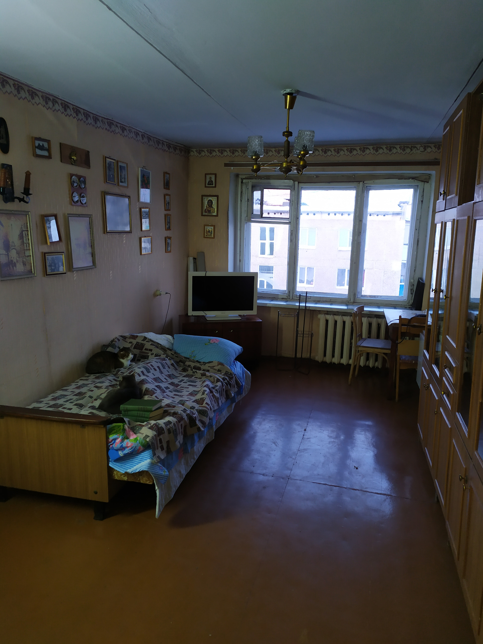 В квартире 2 изолированные комнаты, выходящие на запад и восток, раздельный сан узел, балкон с хорошим видом. В одной из комнат добротный натяжной потолок. Окна деревянные. Квартира находится в пригодном для проживания состоянии, но требуется замена обоев и ванной. Две входных двери, входная - металлическая. Имеется кладовка и гардеробная.