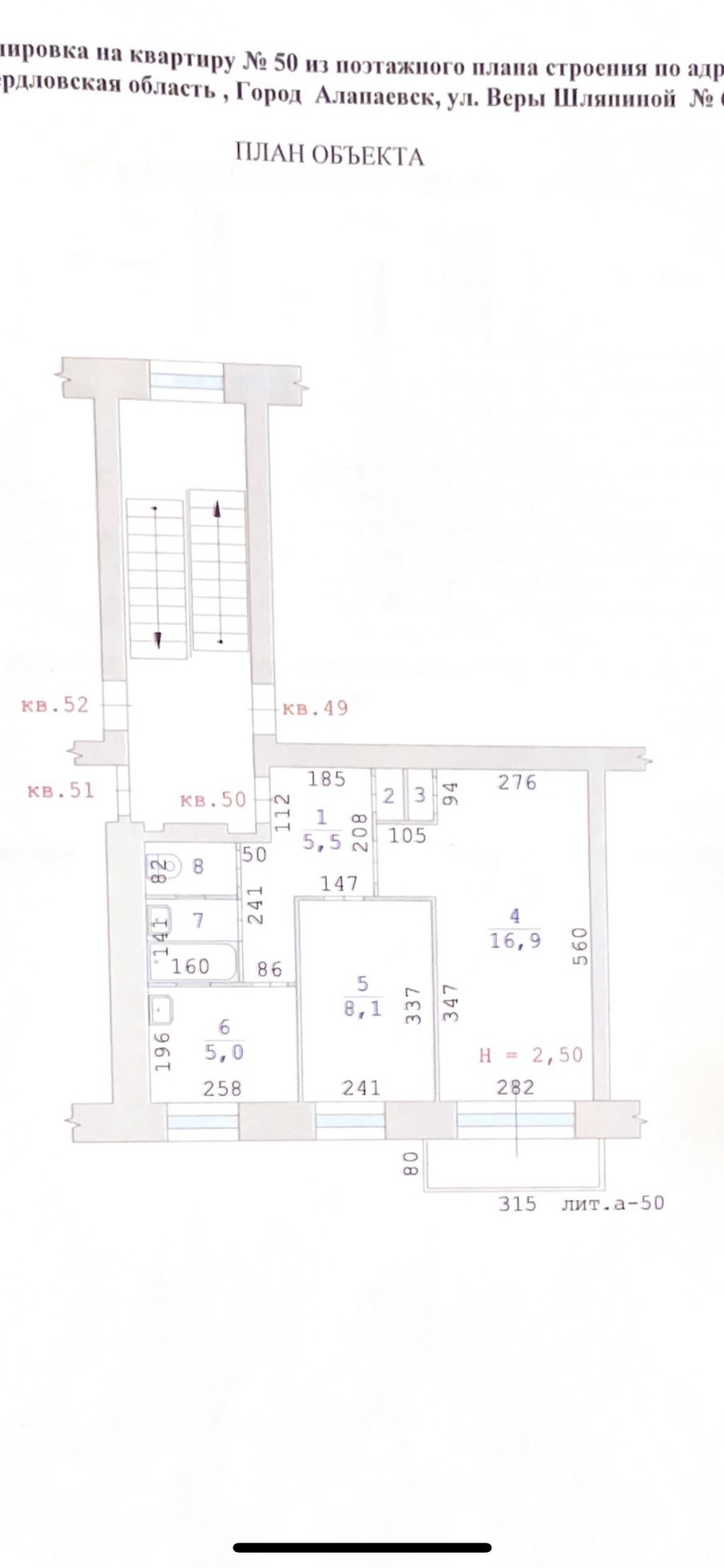 Высота потолков 2.5 м