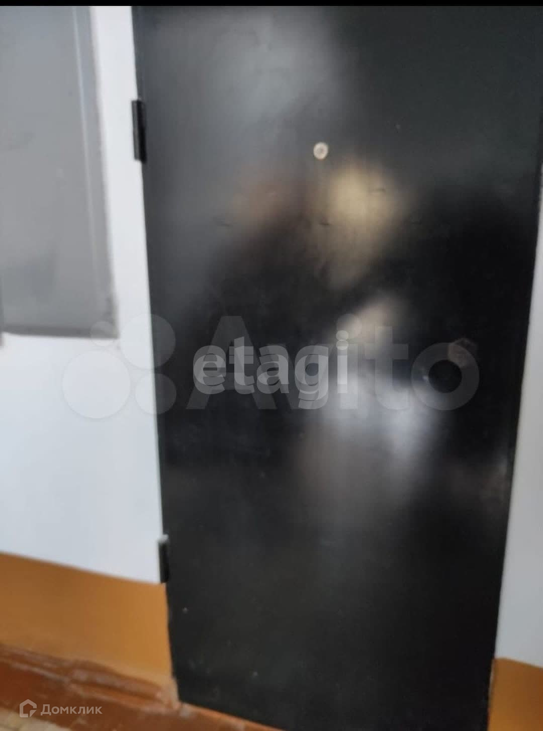 Входная дверь металлическая, установлен домофон, счетчики на воду.