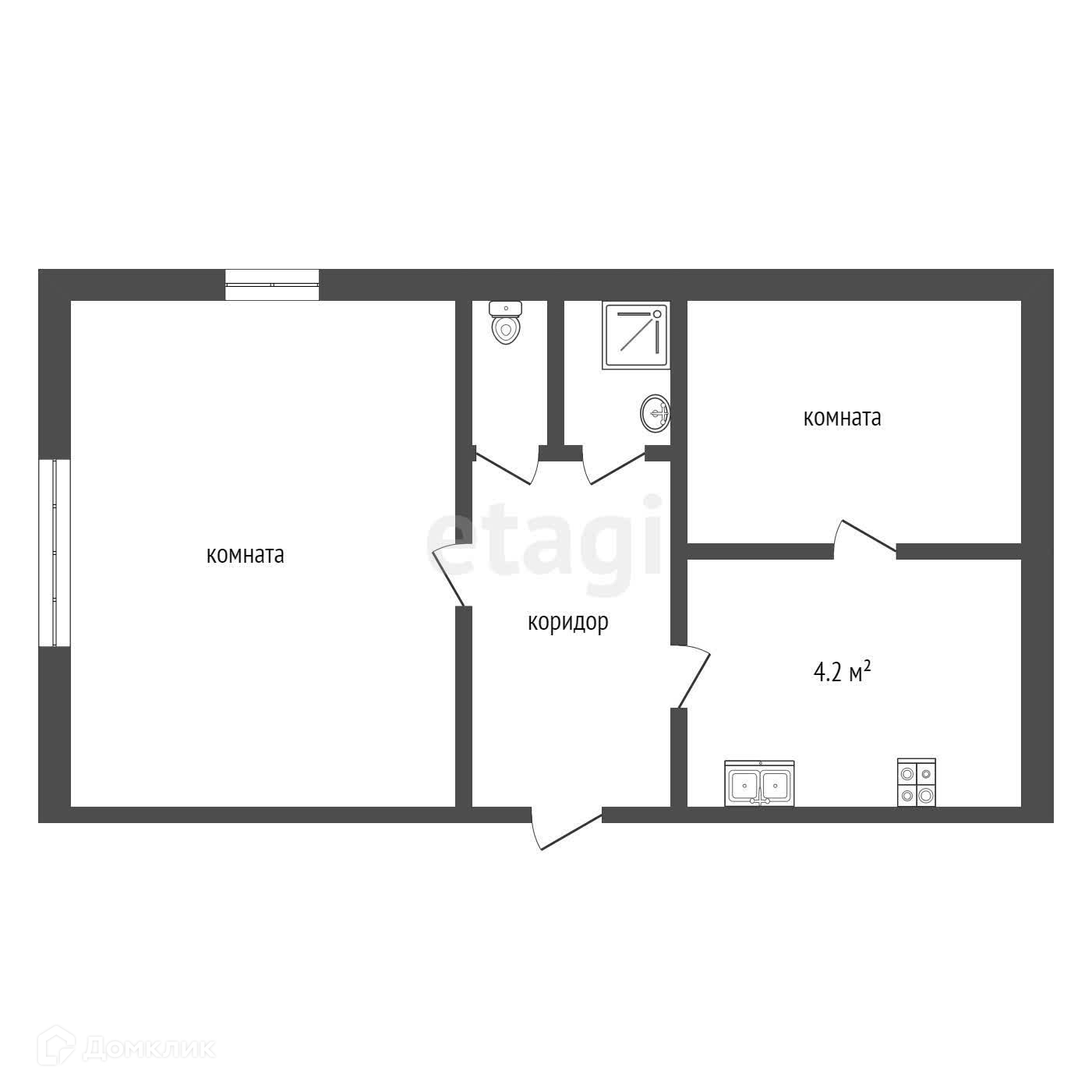 кухня 4,2 кв.м, прихожая, сан.узел раздельный.