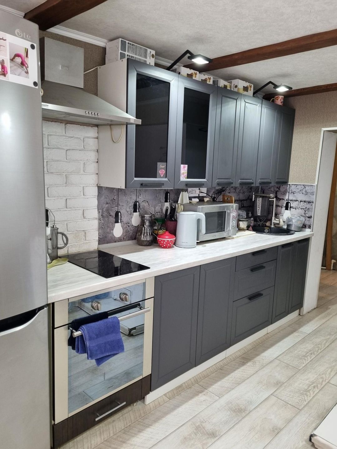 Продам 3 комнатную квартиру ,площадью 63,3 кв.м.,по улице Стахановская 18,в трех квартирном,брусковом доме,в квартире центральное водоснабжение, электроотопление,две печи ,автономная канализация(выгребная яма),сделан косметический ремонт,стоят стеклопакеты,пластиковая сейф дверь,межкомнатные двери,на полу ламинат,в прихожей и на кухне плитка керамогранит и  регулируемые теплые полы,натяжной потолок в гостинной и в коридоре ,биметаллические радиаторы,сан узел совмещен (душевая кабинка),имеется гардеробная,крытая ограда,большой гараж,новая крыша,во дворе есть жаркая банька,зона отдыха и барбикю,крытая беседка,рядом находится вся развитая инфраструктура.
