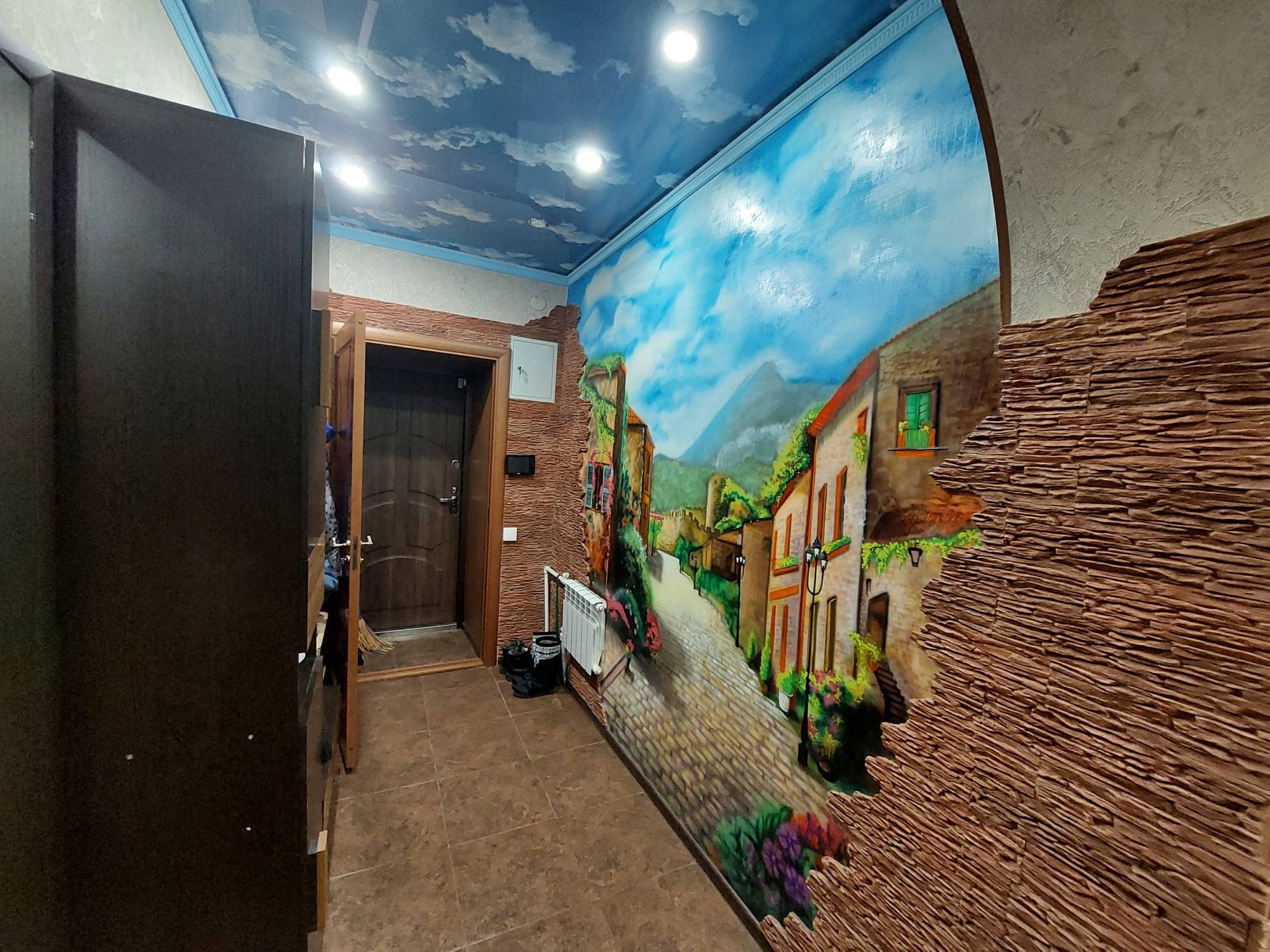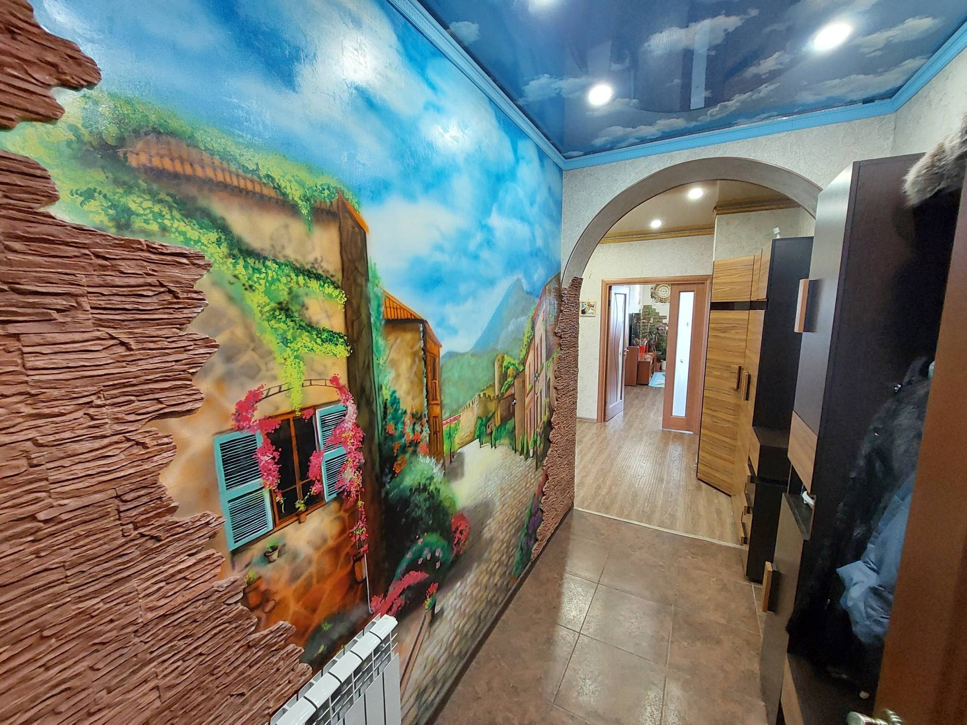 ✅Прихожая: теплый пол, аэрография. Шкафы сделаны на заказ.