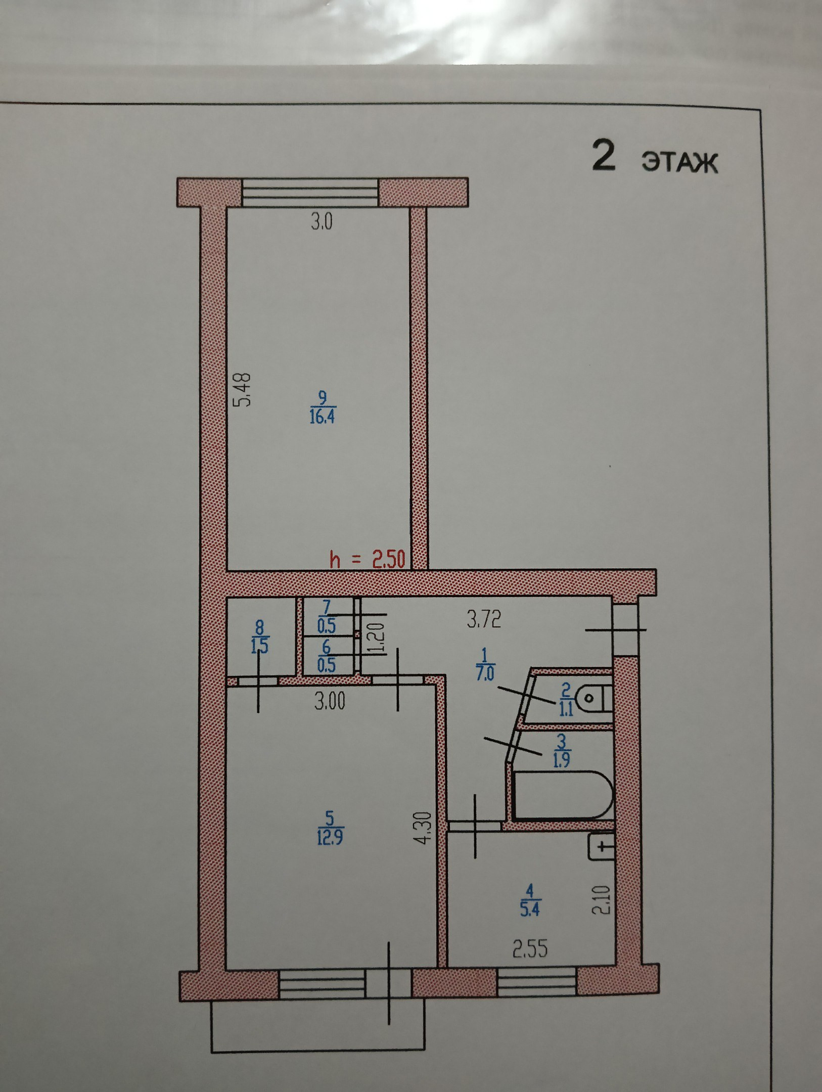 Площадь кухни 5.4 м2