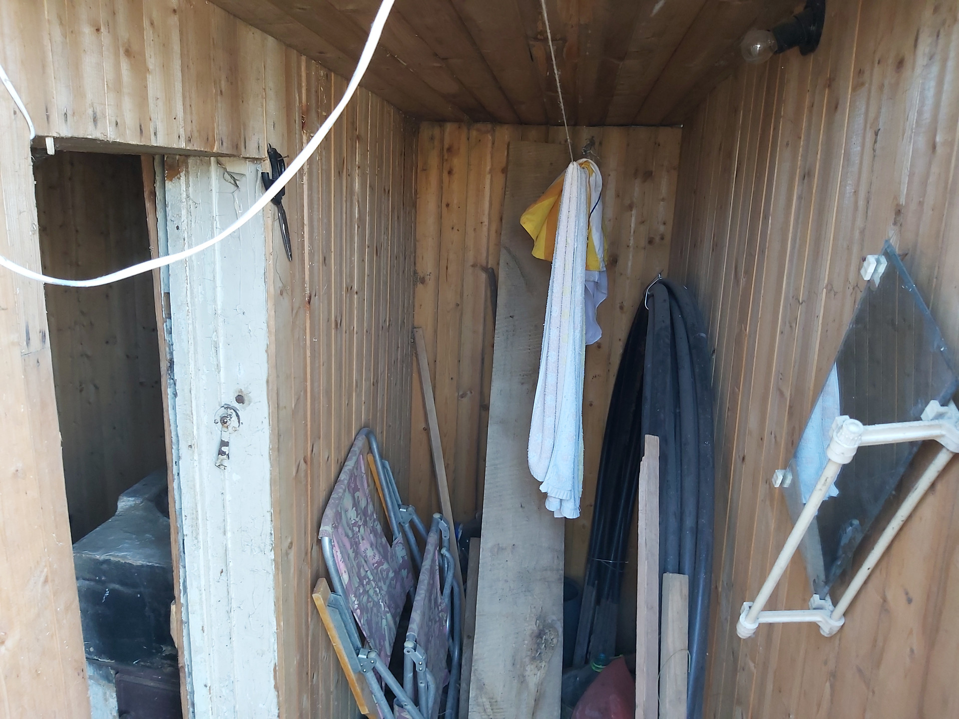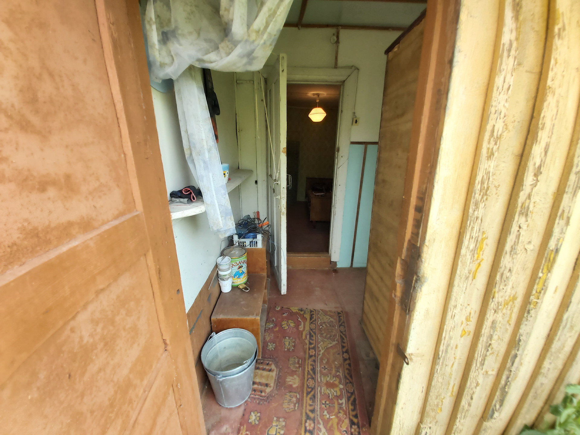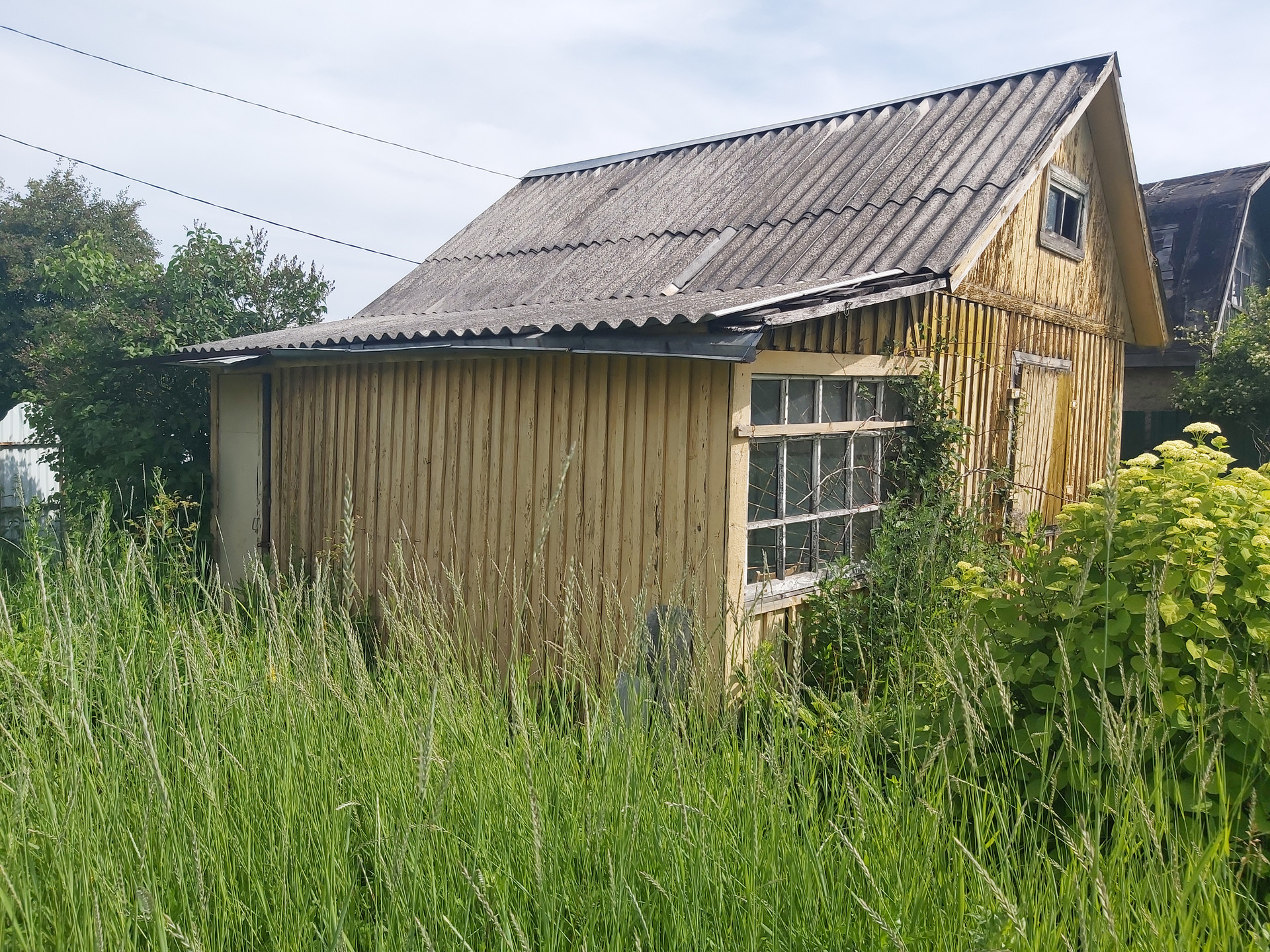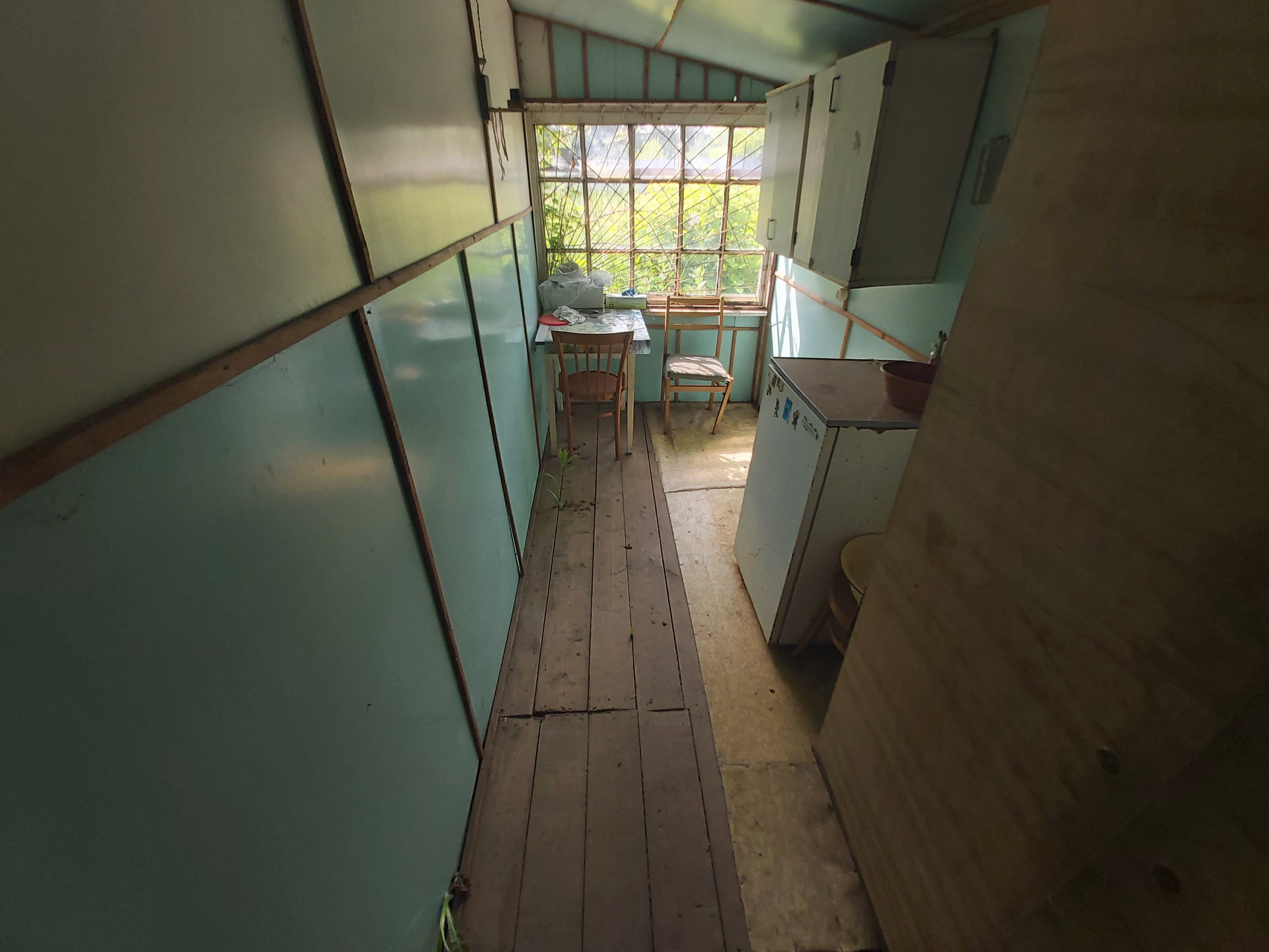 ОБЪЕКТ - ДАЧА: Дача каркасно-щитовая, одноэтажная, общей площадью 30 кв.м. Состоит из прихожей, террасы-кухни и двух проходных комнат. Окна деревянные.