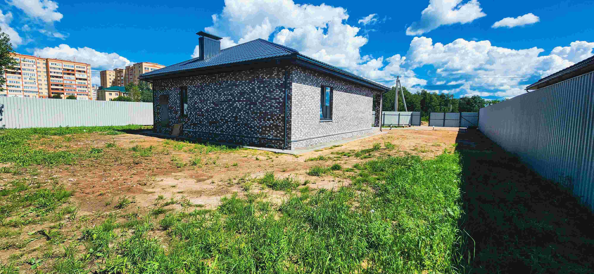 Участок 10 соток огорожен забором из металлопрофиля с20 в цвете графит.