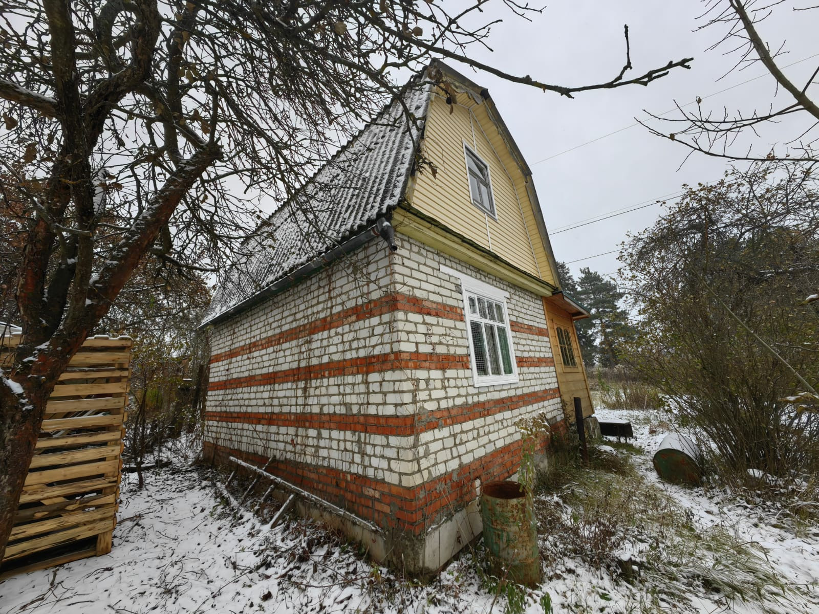 1-й этаж - кирпичный, на первом этаже: комната+кухня, терраса.