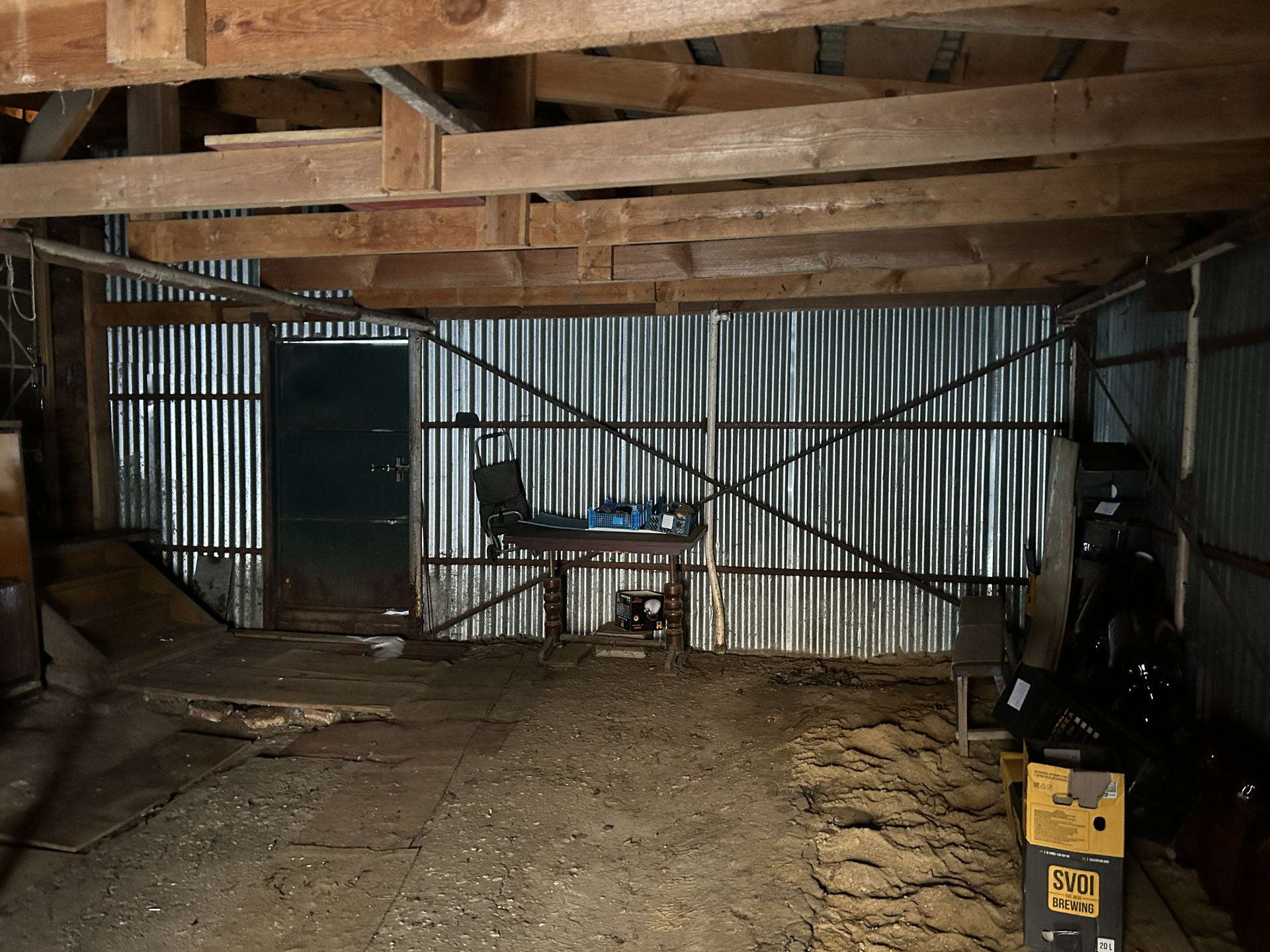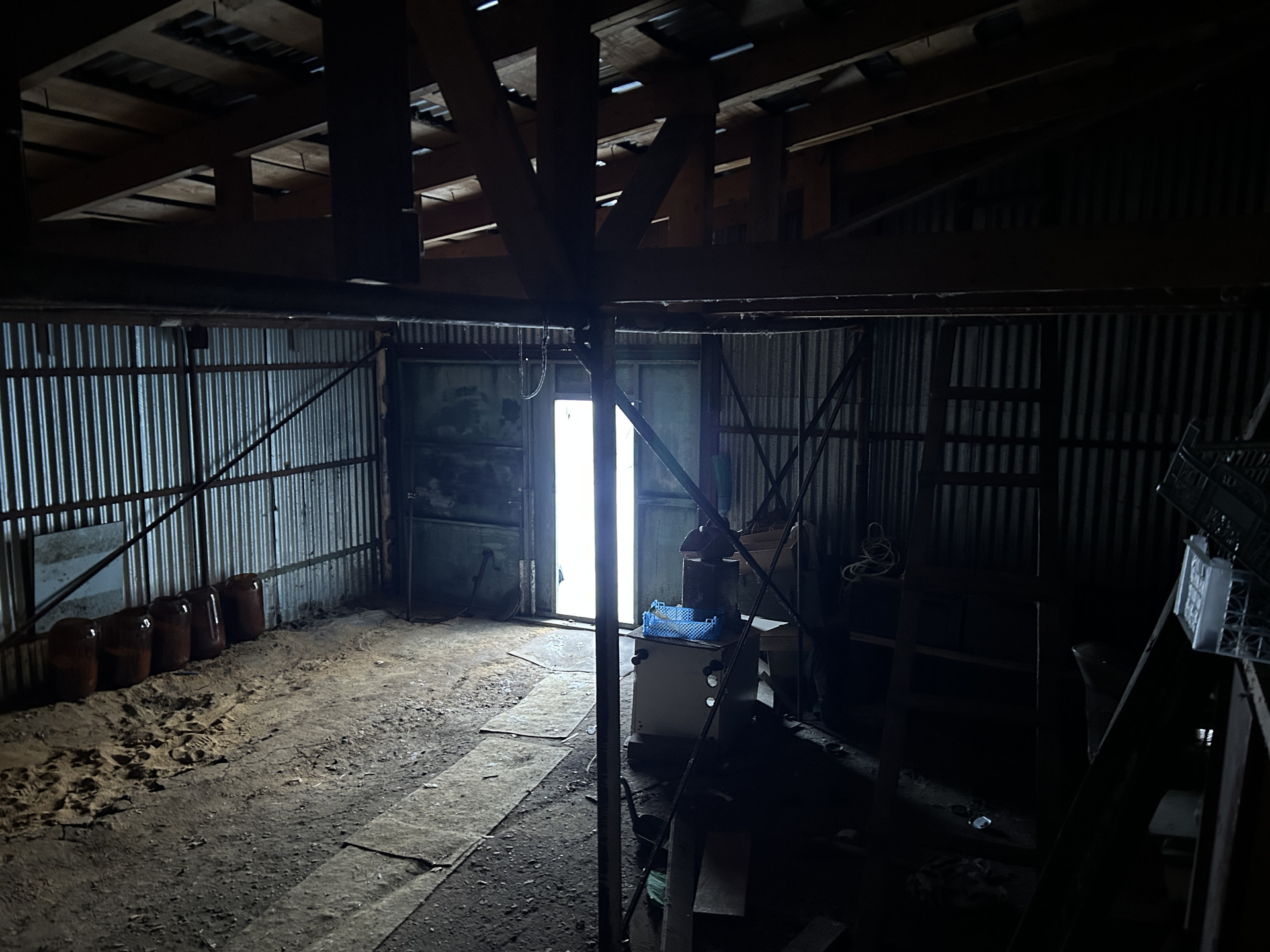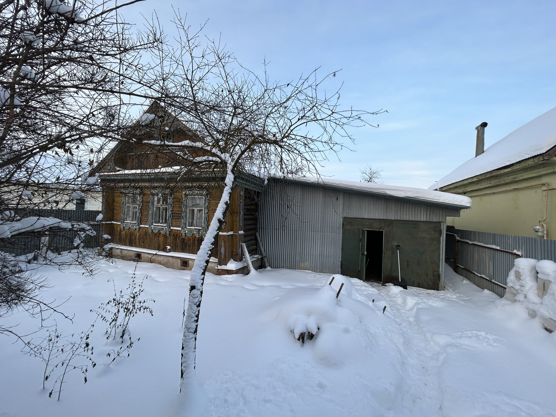 ГАРАЖ: К дому пристроен гараж из металлического каркаса, обваренного металлическими толстыми листами. Материал каркаса под крышу практически новый. При желании можно утеплить гараж и сделать как второе жилое помещение. Вход в дом сделан через гараж и также сделан выход на заднюю часть участка.