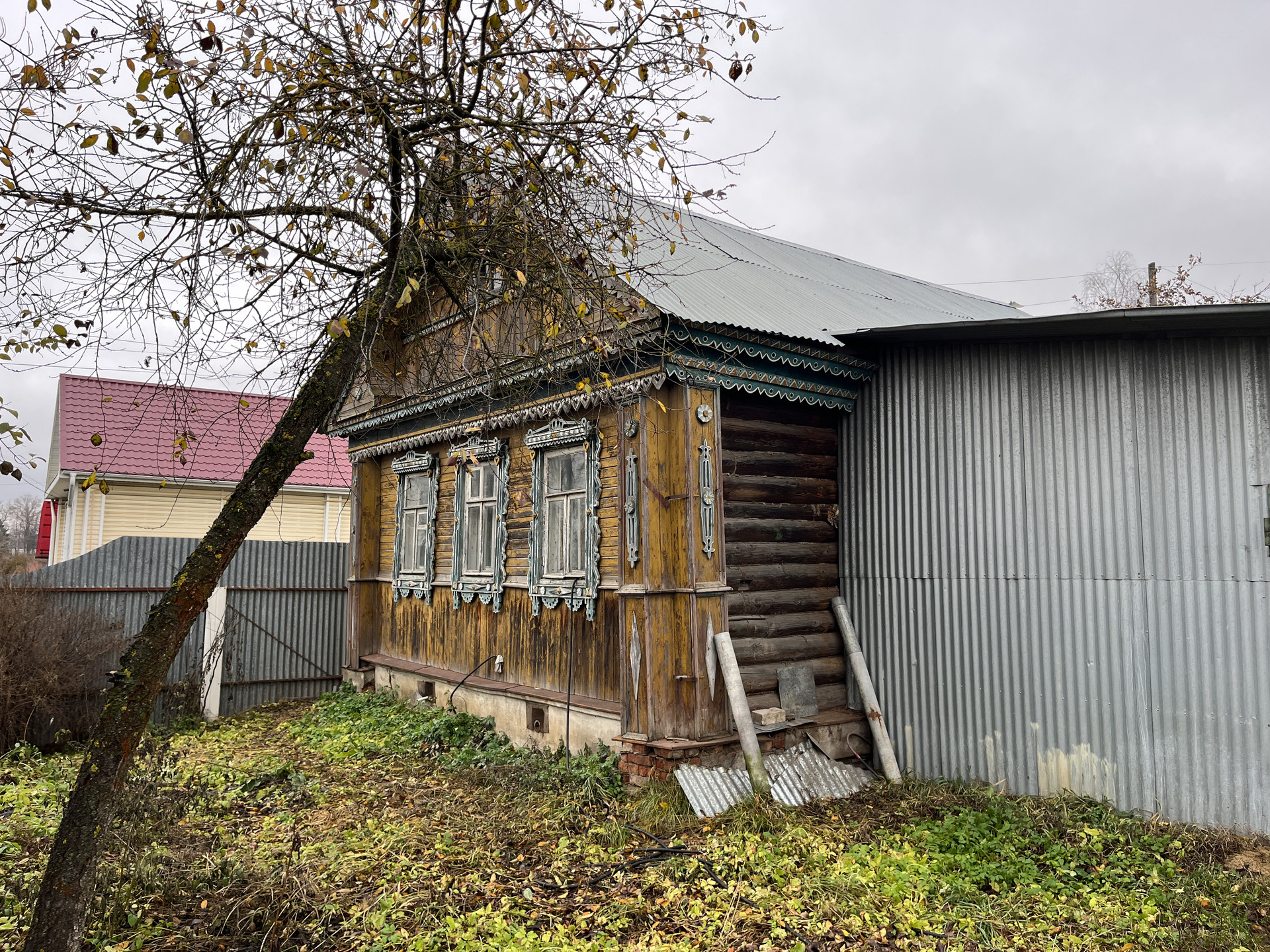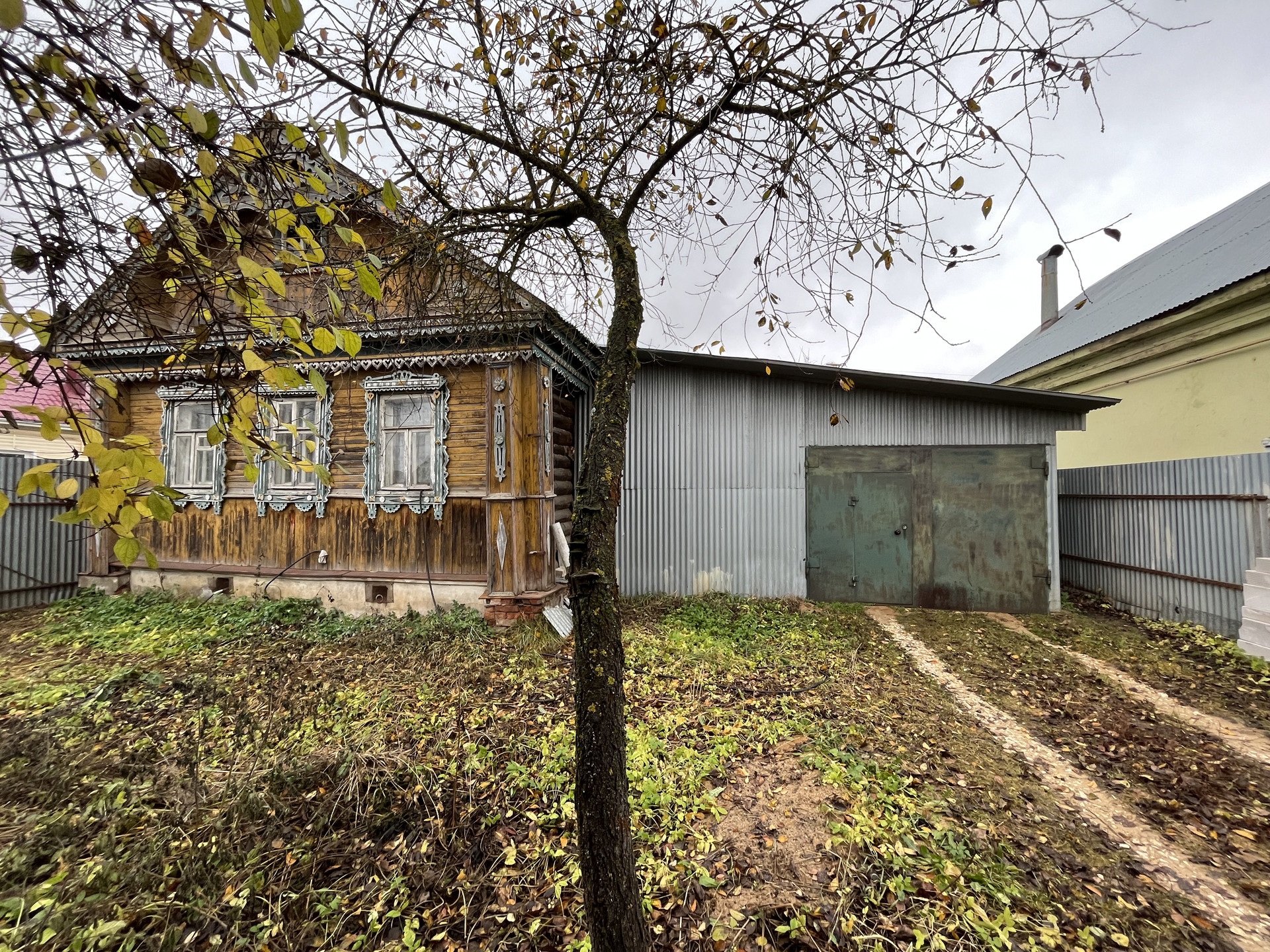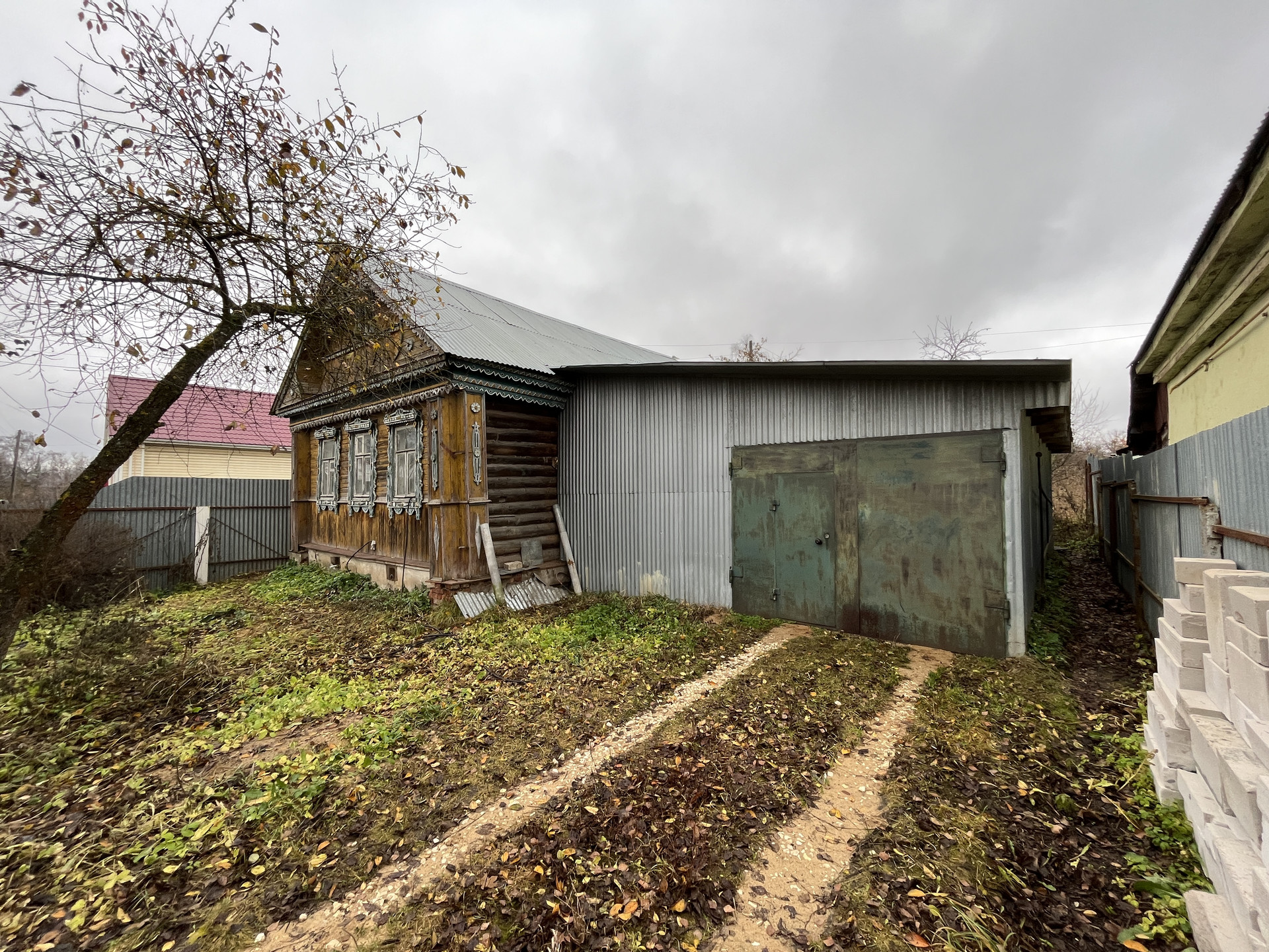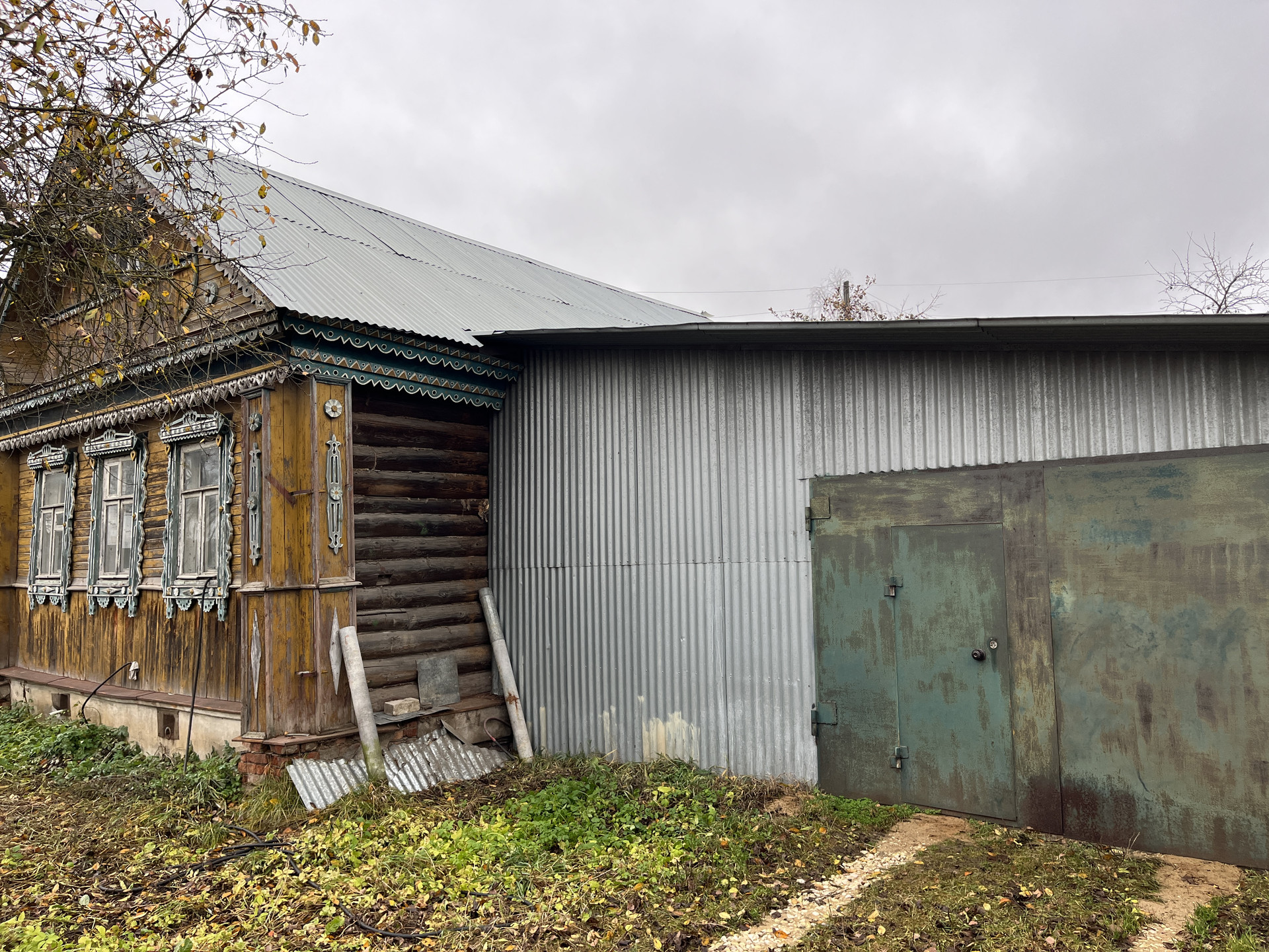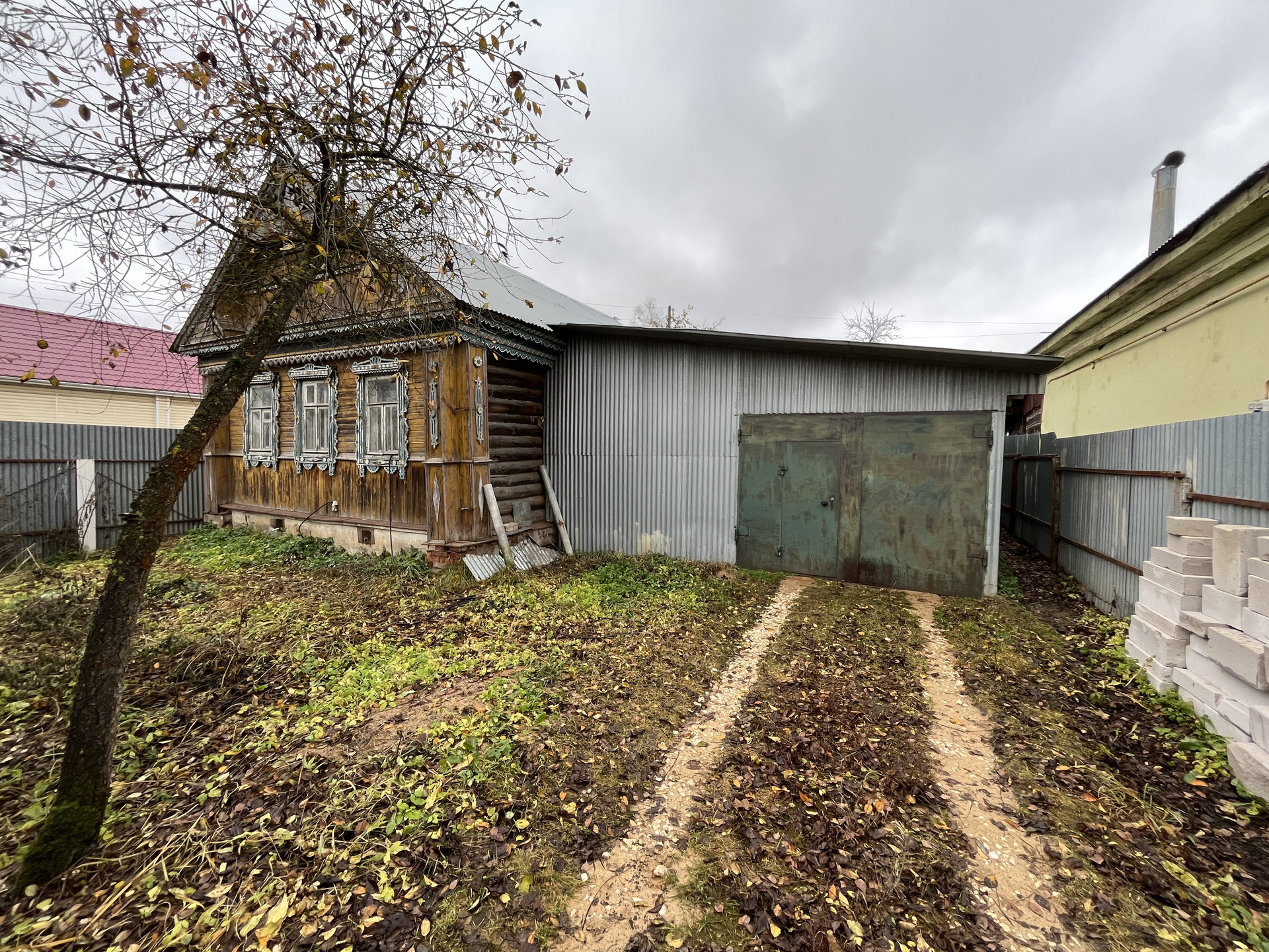 ЖИЛОЙ ДОМ: Одноэтажный бревенчатый дом на ленточном фундаменте общей площадью 45 кв. м., площадь дома вместе с гаражом - 80 кв. м. Дом состоит из кухни, двух изолированных комнат и совместного сан-узла. Кровля - оцинкованные железные листы. Дом в хорошем состоянии. Кадастровый номер жилого дома - 33:17:000308:190