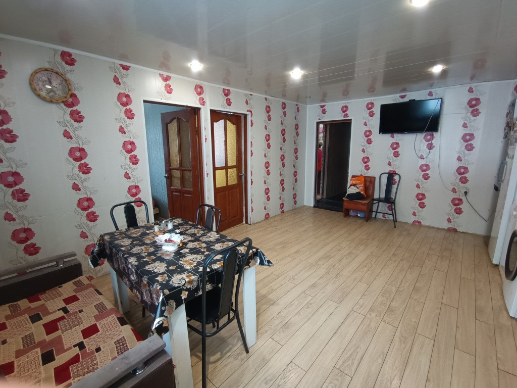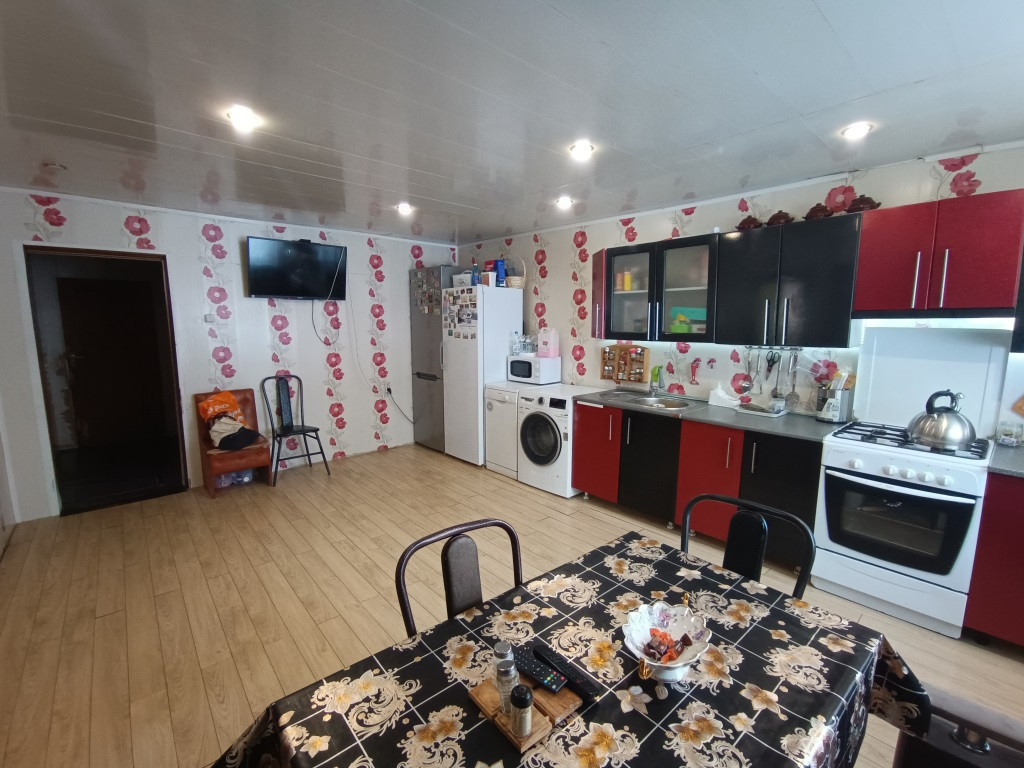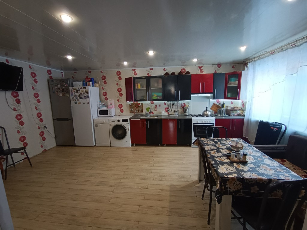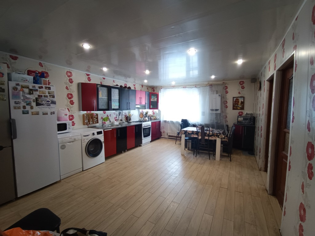 В доме на первом этаже: 6 комнат, 2 большие оборудованные кухни, погреб, 2 санузла с сантехникой, прихожие. На 2 этаже 4 комнаты, санузел с сантехникой, 2 комнаты оборудованы под кухню.