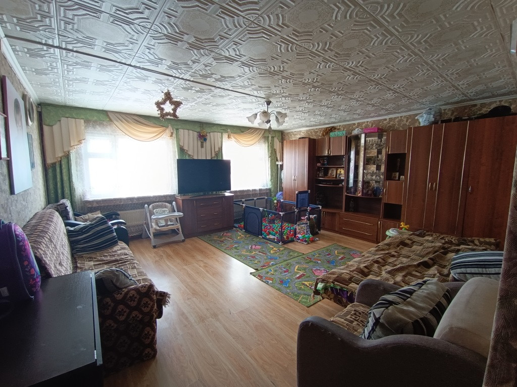 Дом из бруса, обшит сайдингом, окна пвх, крыша покрыта металлом. Мебель.